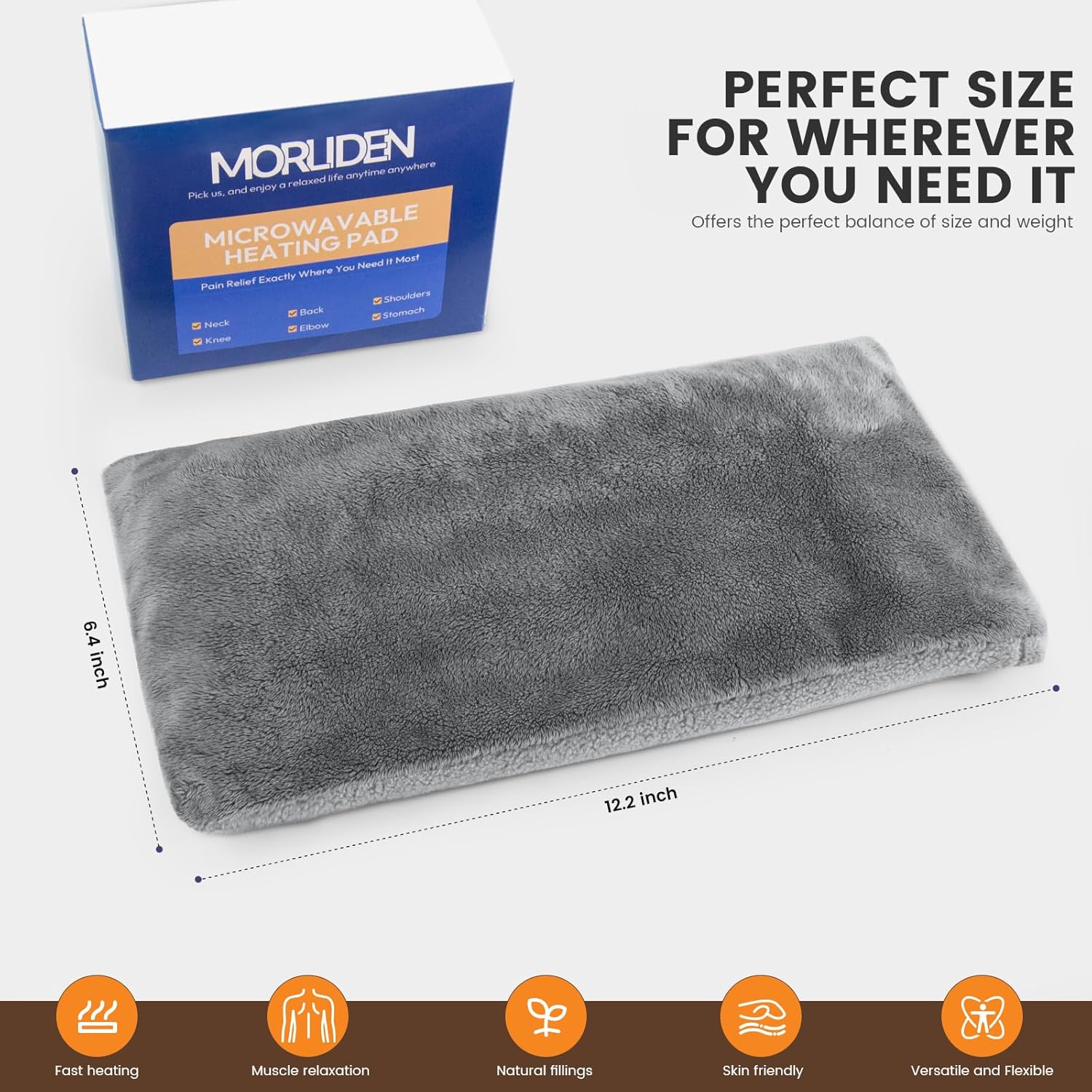 Microwave Heating Pad with Washable Cover, 6.5 X 12“ Microwavable Heating Pads for Neck and Shoulders and Back, Warm Compress for Knee, Muscles, Joints, Wrist, Abdomen (Gray)