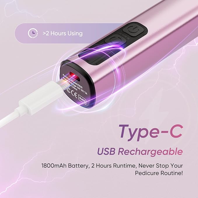 - 🔋【𝐂𝐨𝐫𝐝𝐥𝐞𝐬𝐬 & 𝐑𝐞𝐜𝐡𝐚𝐫𝐠𝐞𝐚𝐛𝐥𝐞 𝐃𝐞𝐬𝐢𝐠𝐧】Unlike traditional corded electric foot callus remover, our foot scrubber dead skin remover is completely wireless design, it offers convenience for mobility, eliminating the hassle of cords. The heel file for cracked heels electric powered by a rechargeable 1800mAh battery that supports up to 2.5 hours use, with Type-C USB charging port, more convenient and faster to charge. High-quality gear motor, stronger power and longer life.