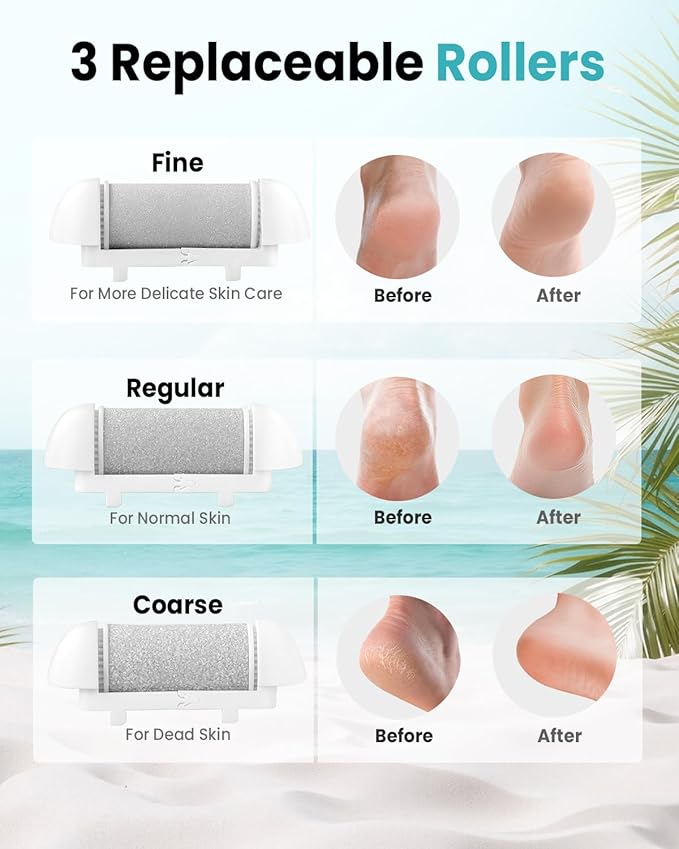 - Pro Rollers, Precise Finish: Swap coarse/medium/fine heads to match your skin. Pro grinding with interchangeable files works as a file grinder sander for heels and soles—an effective remover for stubborn calluses