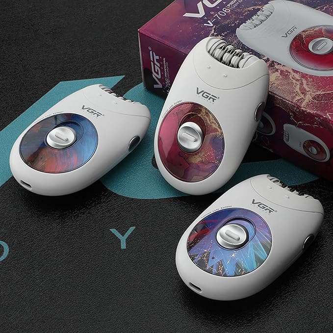 - Complete Kit with Useful Accessories:The VGR 706 comes with everything you need for a clean and efficient hair removal routine: an epilator, protection cap, cleaning brush, and a USB charging cable. The included cleaning brush removes hair residue easily, while the detachable head design makes cleaning a breeze