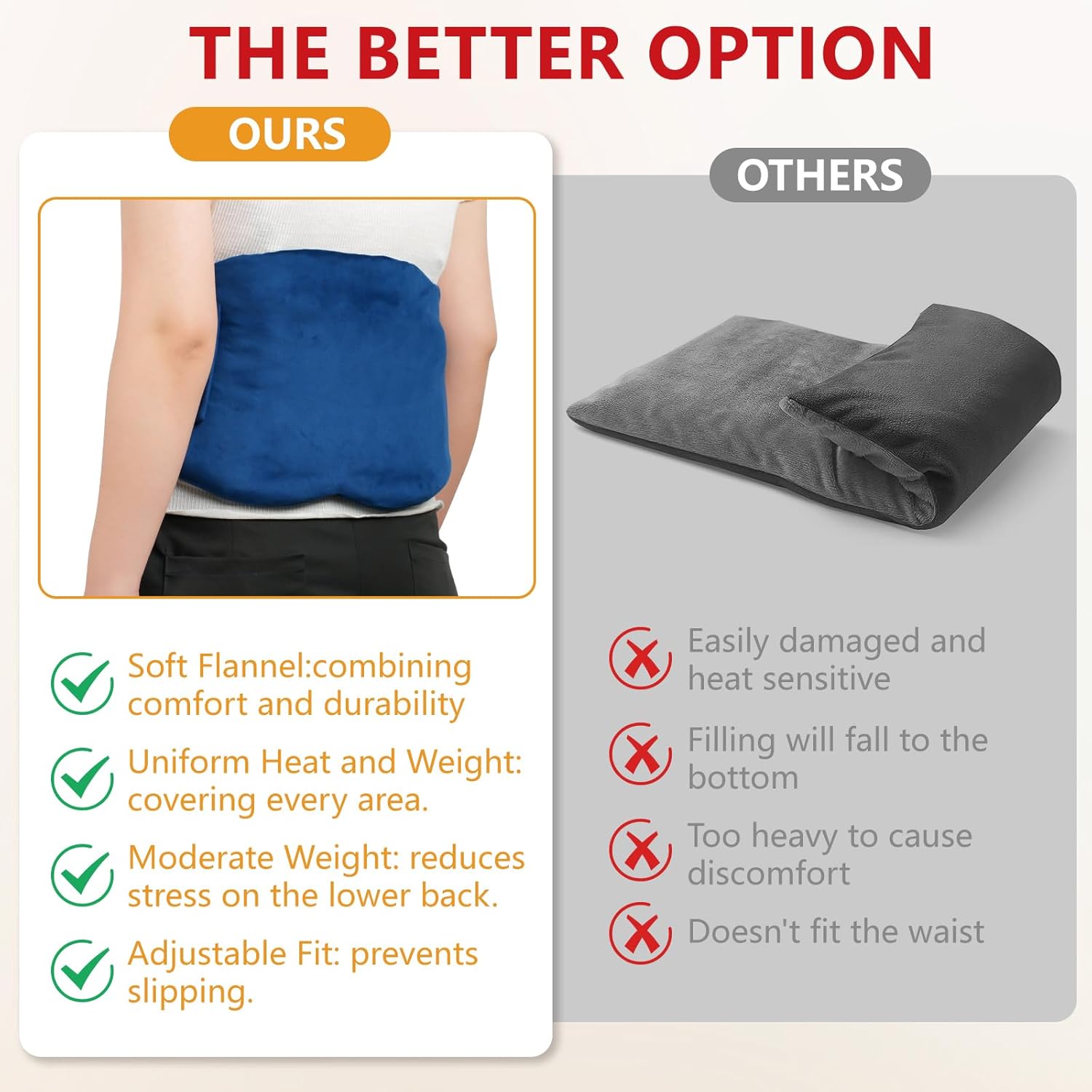 - 【Reusable Microwave Heating Pack】 Is more convenient to carry and has a longer heat retention time. It is suitable for cramps, menstrual pain, muscle soreness, rotator cuff or back injuries, etc. The ideal weight hot compress heating pad wraps around your body.