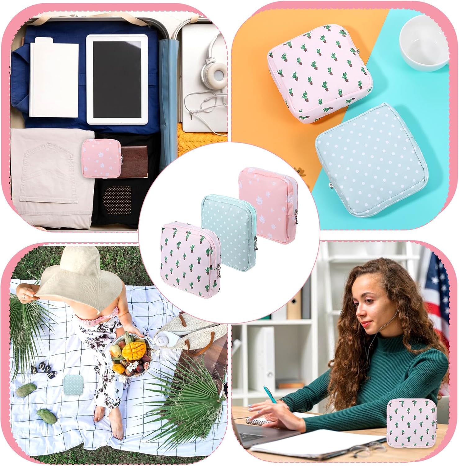3PCS Pad Pouch for Women Period Bag Zippered Sanitary Storage Bag for Tampons, Pads, Menstrual Cup & Disc, Portable Feminine Hygiene Organizer, Tampon Holder 5.12 x 5.12 Inch Travel Pouch