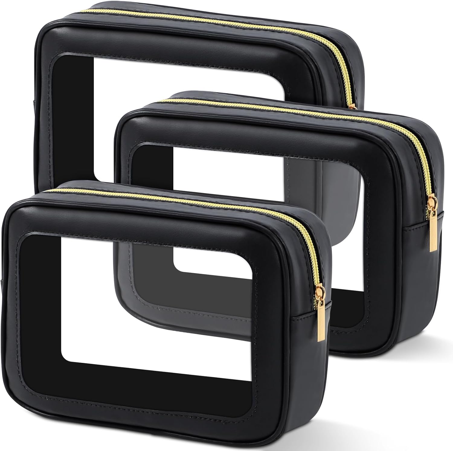 3PCS Diaper Bag Organizer Pouch Set, TSA Approved Toiletry Bag,Clear Waterproof TPU Makeup Bag Set Travel Organizer Bags for Women and Kids