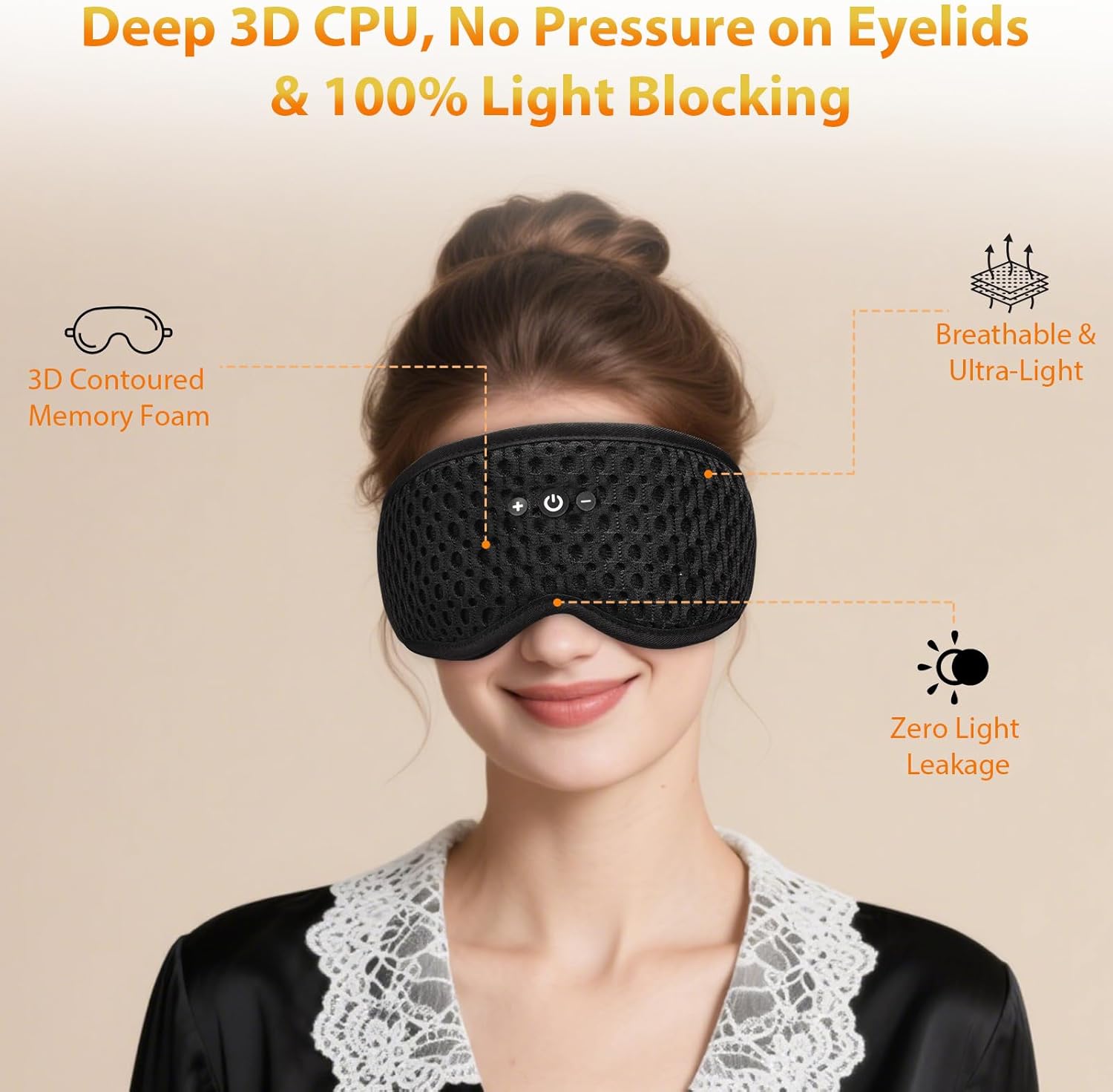 - 【Detachable 3D Contoured Pad for Easy Cleaning】 HF016 Sleeping Mask, 0 Eye Pressure & 100% Blackout. Our eye masks are crafted with breathable & Detachable memory foam that perfectly conforms to your face and nose shape, applying zero pressure to your eyes or lashes. The deep, spacious eye cups are designed so well that you can even open your eyes without detecting any light—ensuring total darkness for undisturbed rest. Wherever you sleep, this sleep eye mask creates total darkness and peace for deeper rest. Love listening to audiobooks or white noise? Just turn on the Bluetooth and drift off.