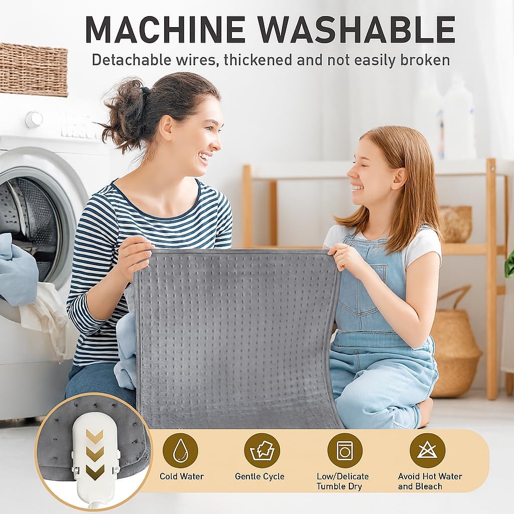- 10 Heating Levels & 3 Timing Options:Discover the perfect warmth for your body with 10 precise heat levels (86°F-150°F). Designed for complete safety and longevity, the certified controller automatically prevents overheating. Enjoy uninterrupted relaxation by choosing a timer (45 min, 90 min, 2 hours, or 2 hours) that suits your session—allowing you to save energy and drift off safely. The easy-read backlit screen is ideal for nighttime use, and the 7.2-foot long cord gives you the freedom to get comfortable anywhere at home
