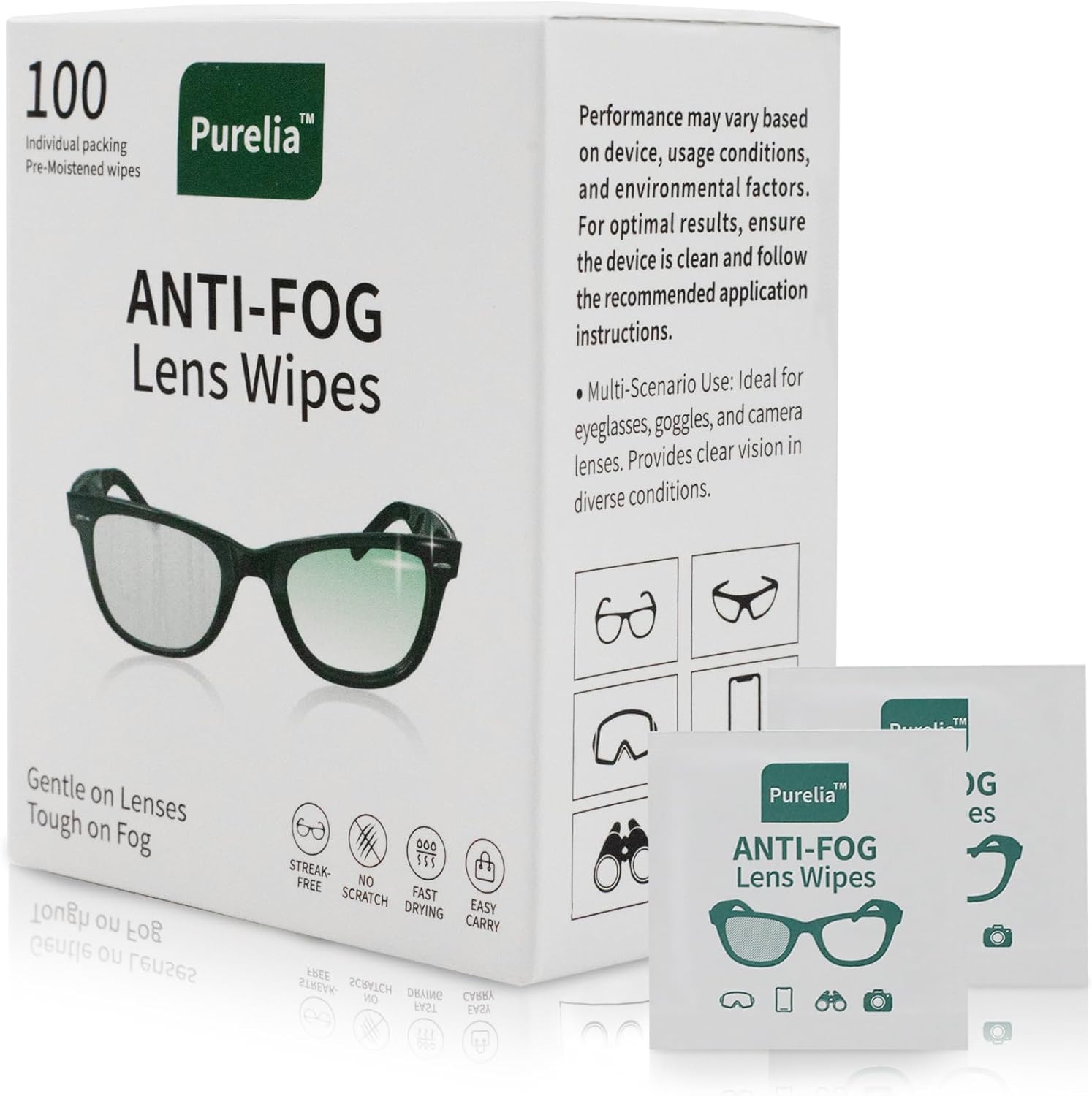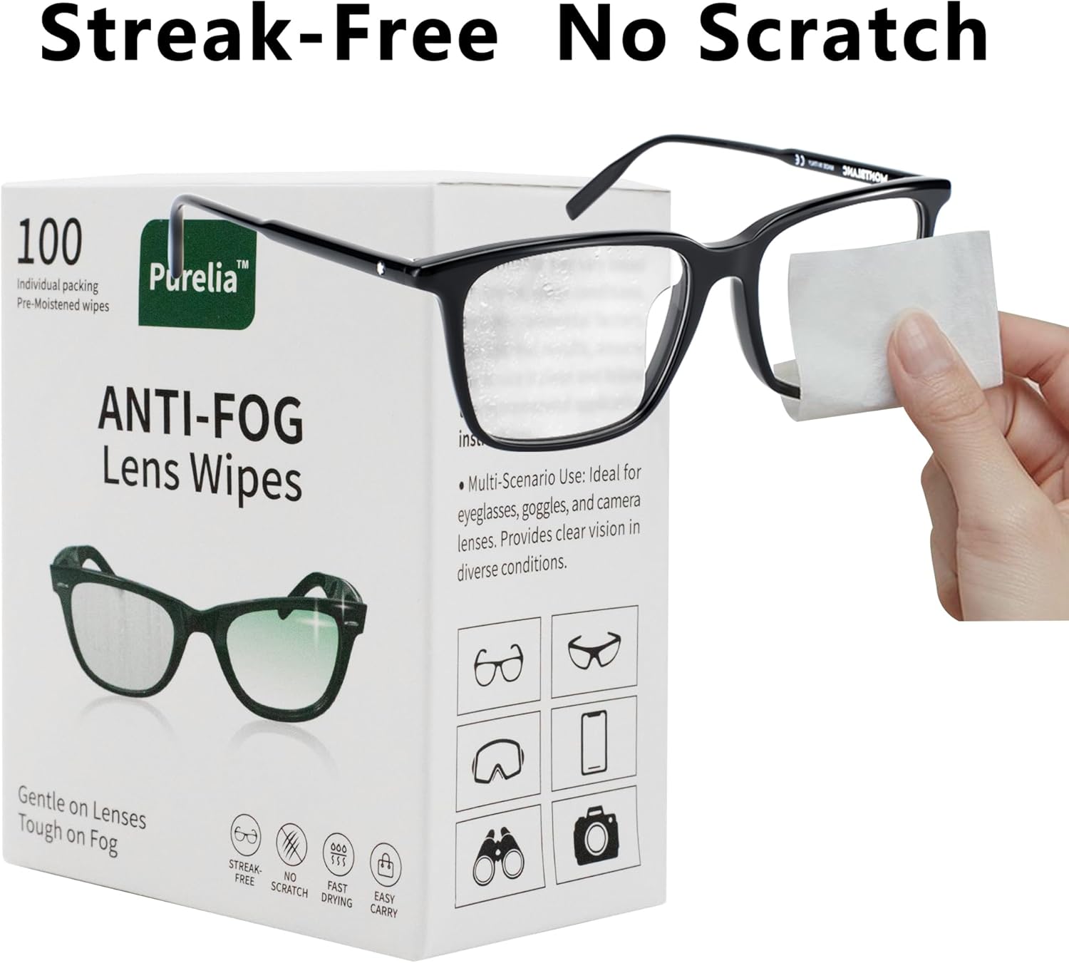 - Immediately eliminate fog and smudges:these wipes are specially designed for daily anti-fog use, suitable for cleaning various glasses and screens in daily life, and have added anti-fog functionality. The advanced anti-fog formula keeps glasses, goggles, and camera lenses crystal clear for up to 24 hours. No more wiping during activities