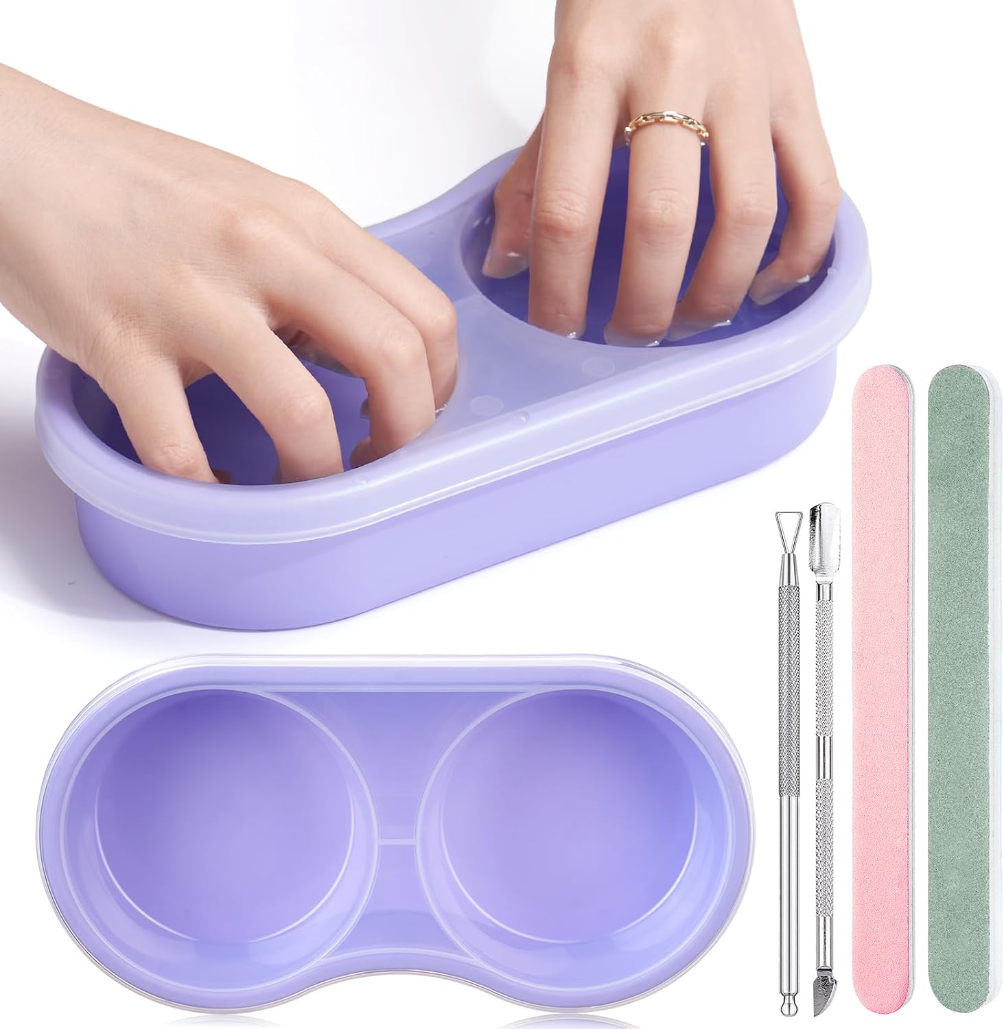 - [Essential Tool for Nail Removal & Nail Care]- Perfect for removing nail polish, gel, extensions, and glitter. It also works as a hand care spa tool—soak in warm water to soften cuticles and nourish nails for a healthy manicure
