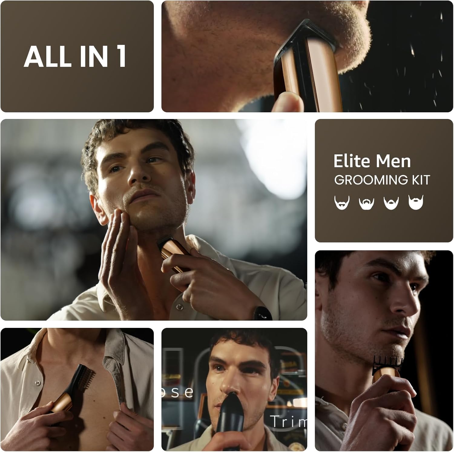 Electric Beard Trimmer for Men: 16-in-1 Professional Barber Hair Clippers - Cordless Grooming Kit - Turbo Speed & Precision Blades, Gold