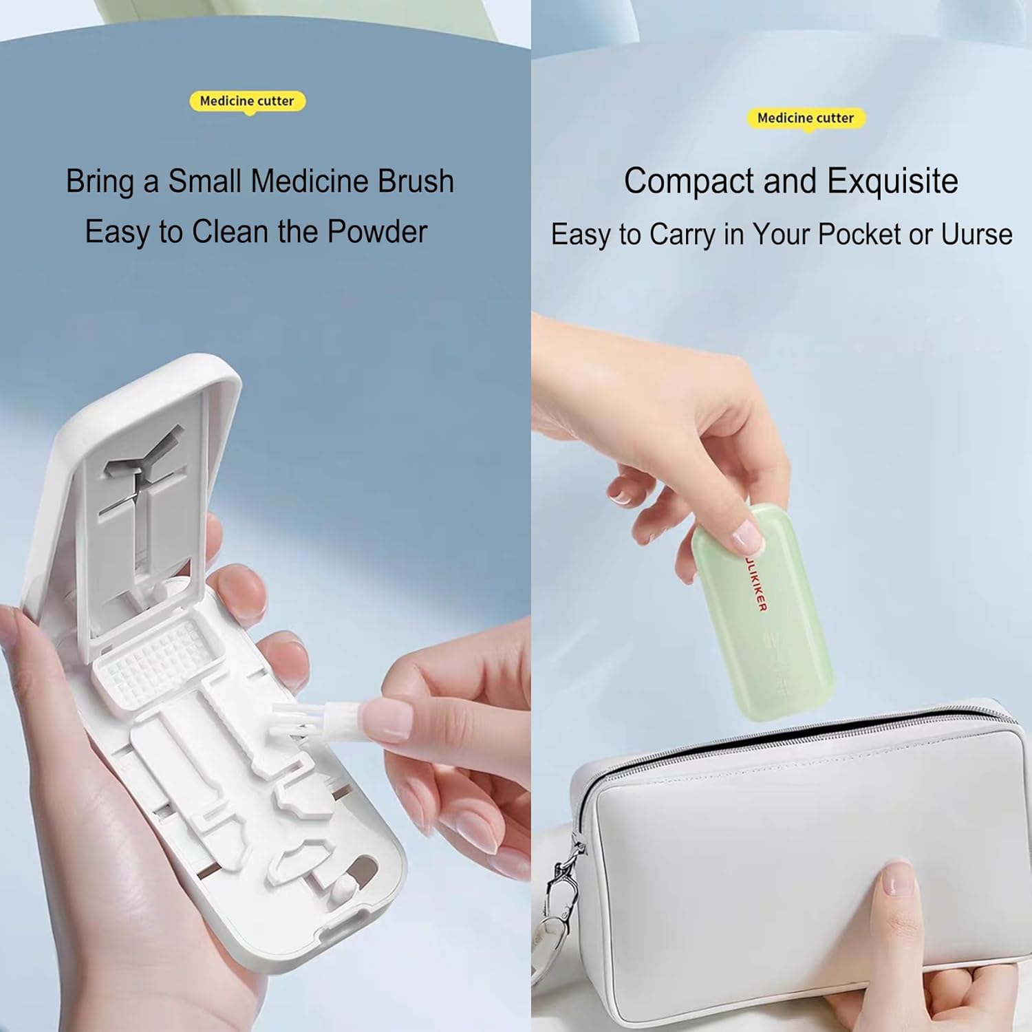 - All-in-One Design – Features a removable grinding tool to crush pills into powder and a built-in storage compartment for easy organization of daily medications.