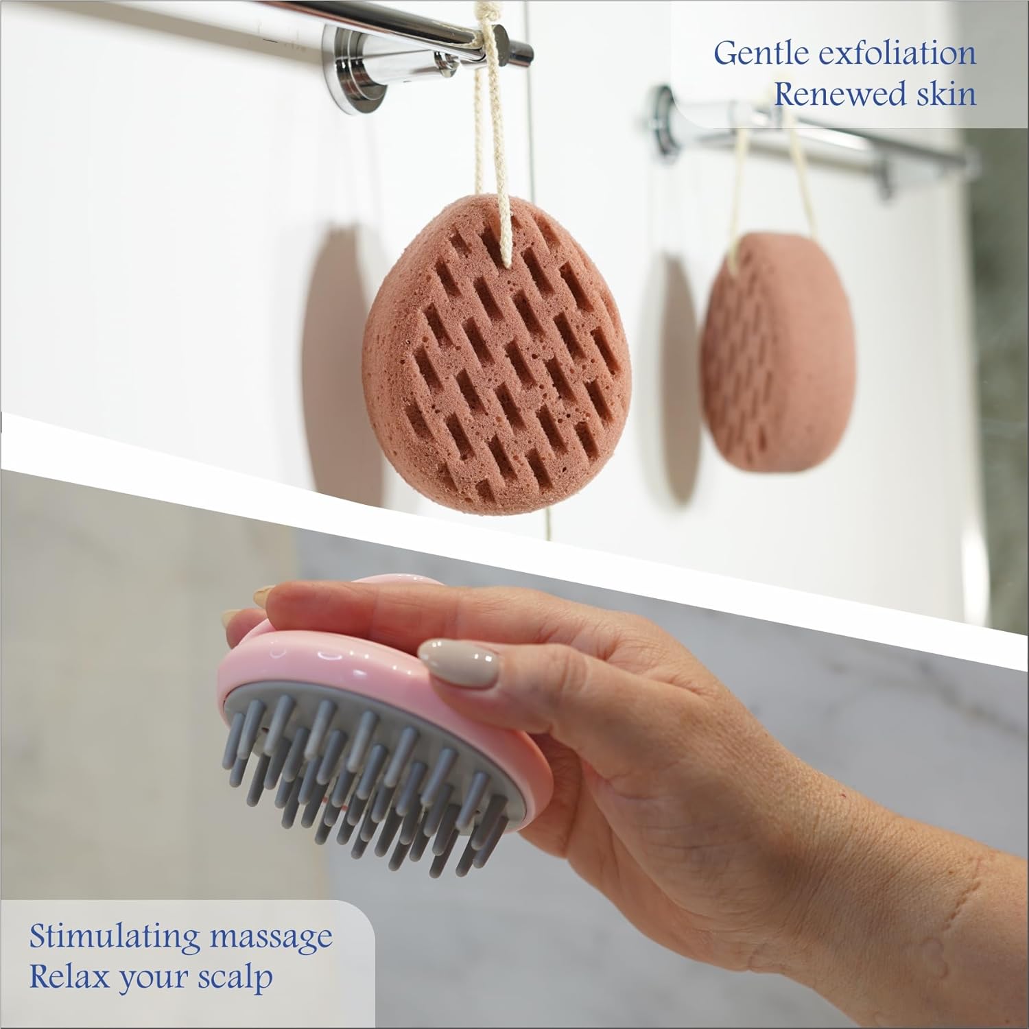 - ✅ JUST RELEASED - SALE PRICE!!! "Complete Spa Gift Set for Relaxation" - Includes a premium bath pillow, exfoliating bath sponge, and scalp massage shampoo brush beautifully packed in a reusable gift bag. The perfect bundle for your self-care rituals. Add to Cart today and enjoy a luxury spa bath at home