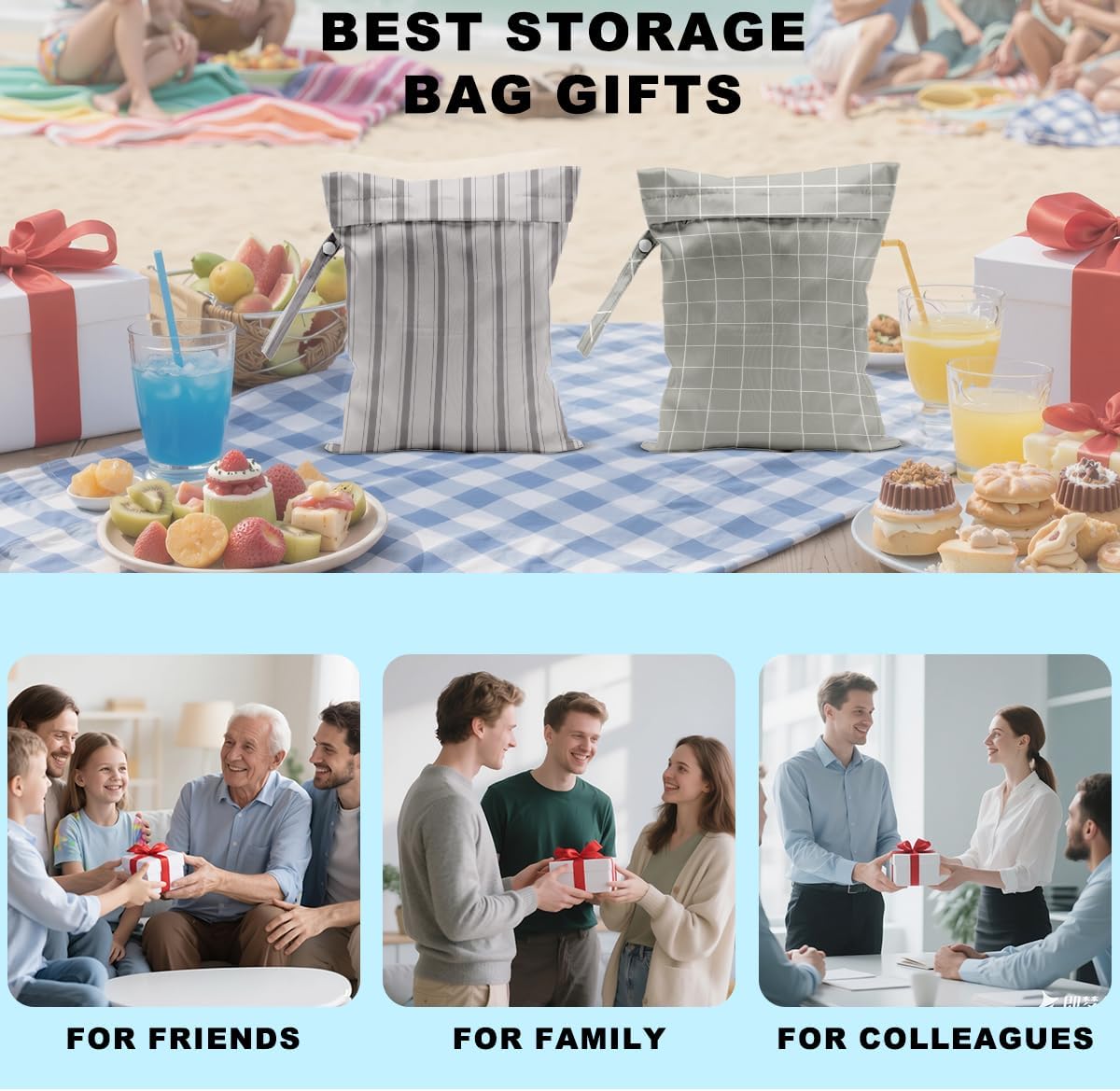 2Pcs Stripe Wet Bag 12x10 Inch, Grid Waterproof Reusable Wet Dry Bags, Rustic Washable Travel Laundry Bags for Swimsuit Pool Beach Diapers Dirty Yoga Gym Clothes, Travel Gifts for Women Friend