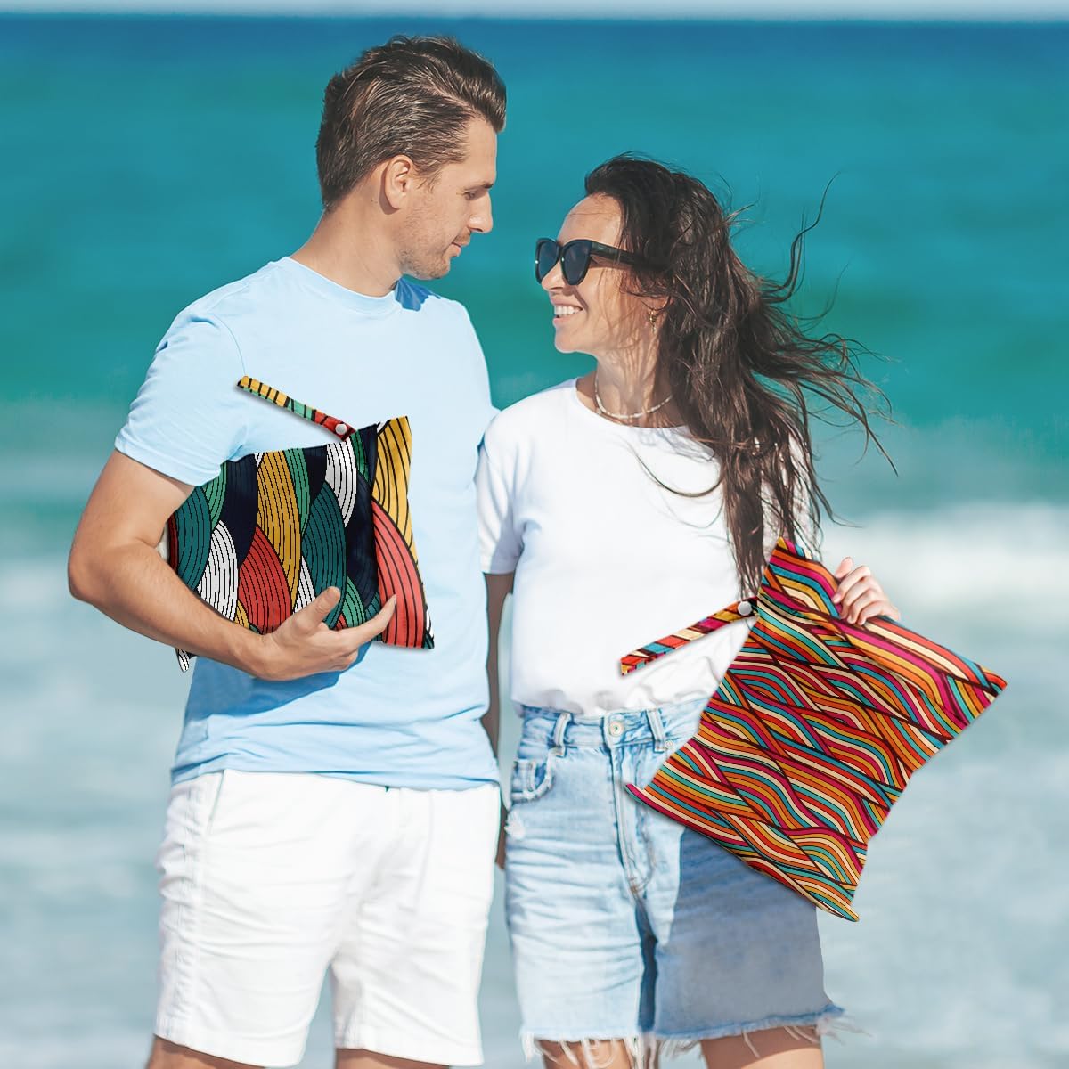2Pcs Wave Print Wet Bags, Wet Dry Bag Reusable for Swimsuit, Travel, Diapers, Pool, Beach, Dirty Yoga Gym Clothes, Toiletries, Makeup Bag, Zipper Pouch Waterproof Birthday Christmas Gifts