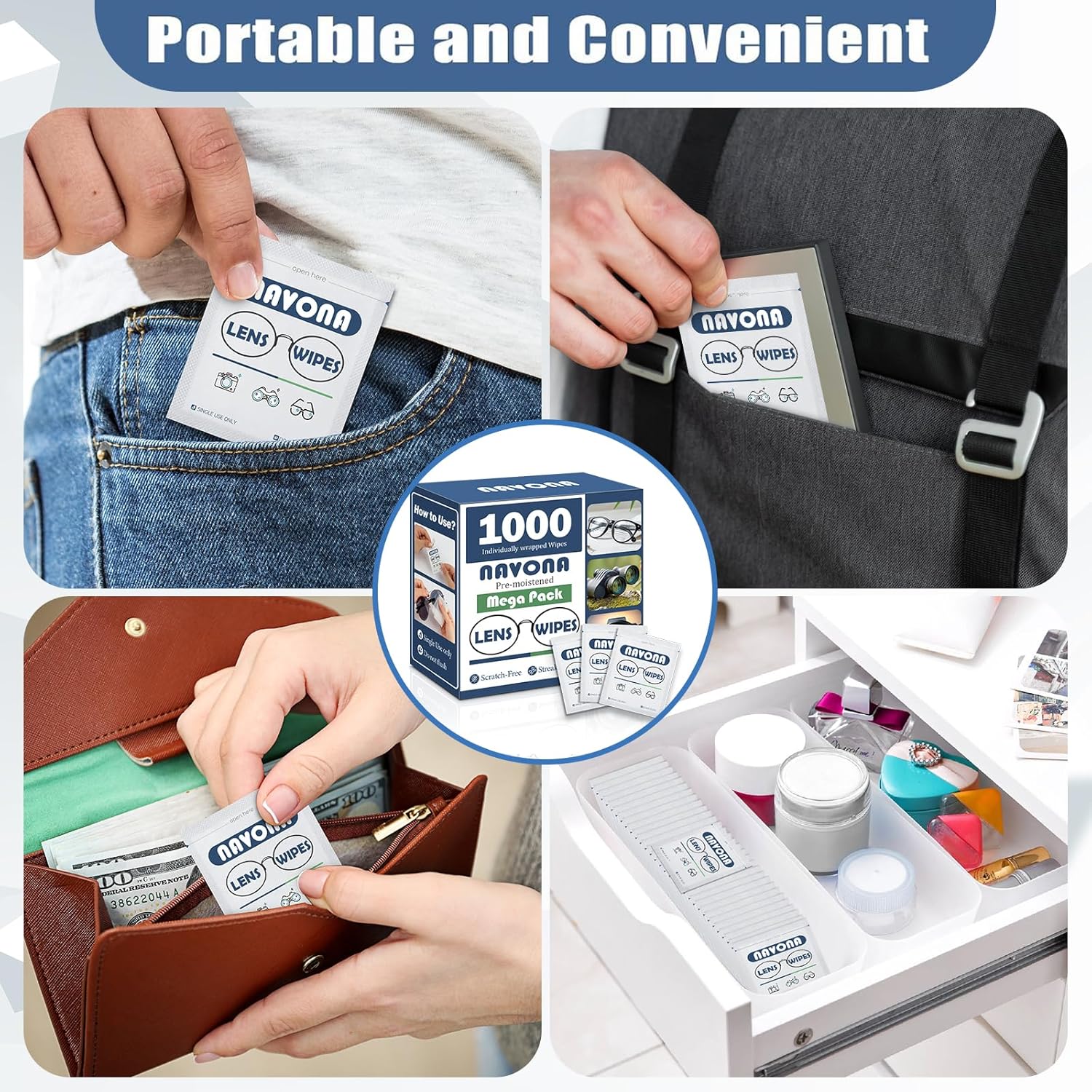 - 【Individually Wrapped Eyeglass Cleaning Wipes – Bulk Pack】Each of the 1000 eyeglass cleaning wipes is individually wrapped for convenience and hygiene. Perfect for daily use at home, in the office, during travel, or for optical stores—grab a wipe anytime, anywhere.