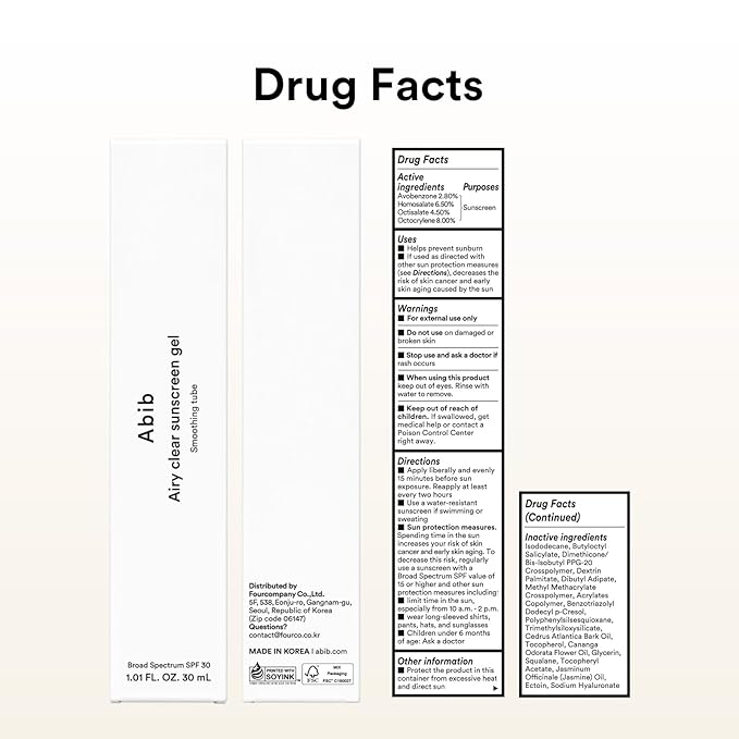 Abib Airy Clear Sunscreen Gel SPF30 1.01 fl.oz / 30 g (Semi- matte) | Korean Suncreen, Suncare, Sunblock, No White cast, Reef Safe, Primer poreless