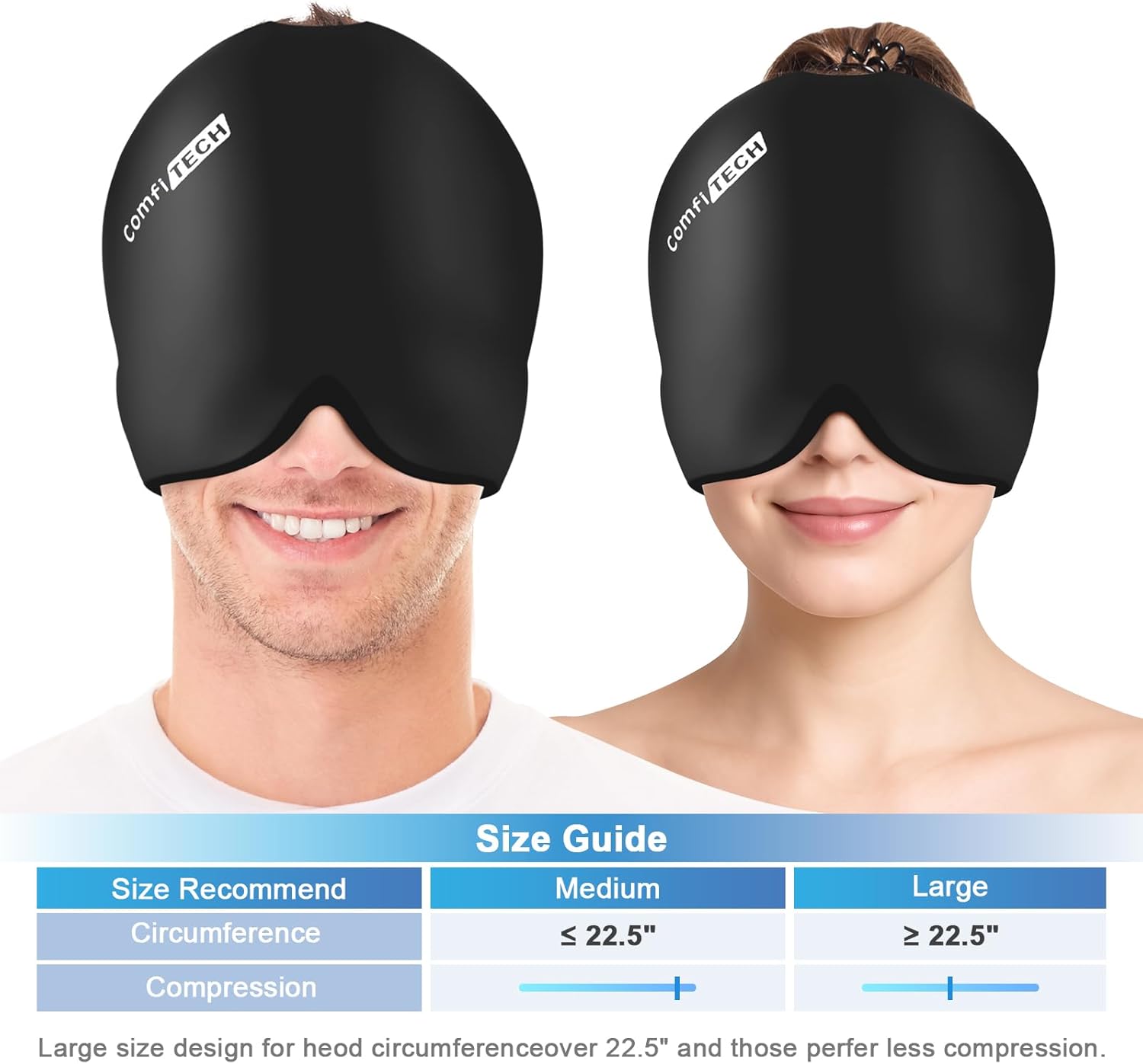 ComfiTECH Head Ice Pack 2 Pack Cooling Gel Cap Reusable Cold Wrap for Head and Eye Comfort and Relaxation, Large