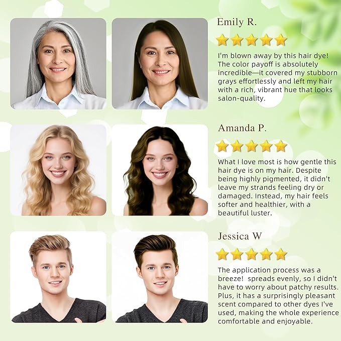- For All Hair Types: Whether you have straight, curly or colored hair, our hair dye shampoo for men and women is perfect, it evenly covers every strand of hair and provides balanced coloring results without damaging, frizzing or nourishing the hair