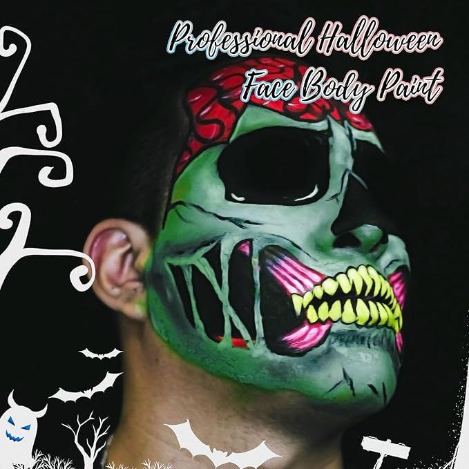 - [Water-based & Non-toxic] This Halloween face painting uses non-toxic and safe water-based ingredients, making it easy to remove makeup. You can first wipe off most of your makeup with a wet tissue, and then use makeup remover water to remove the remaining color. Due to individual differences in skin sensitivity, we strongly recommend conducting a small skin patch test before use. Note: Our face paint is not waterproof. Don't apply body painting when it rains