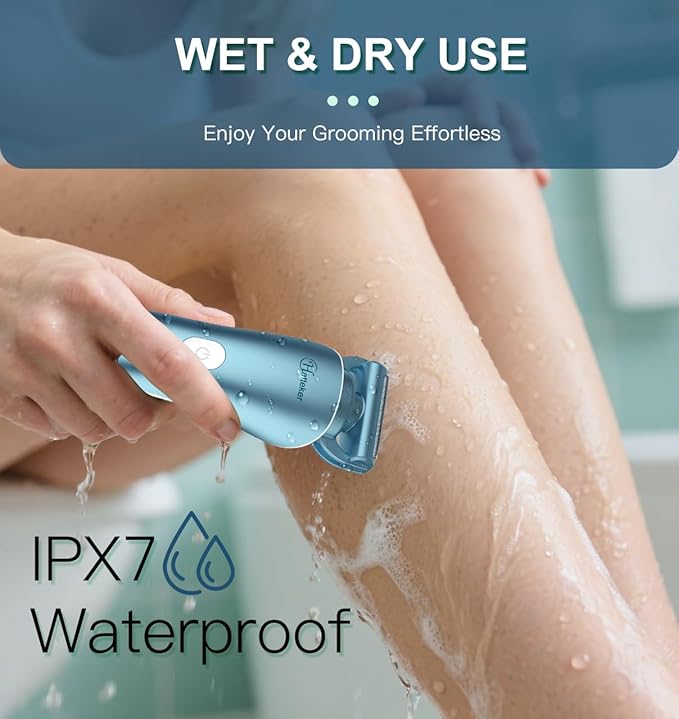 - Safe Dry & Wet Use with IPX7 Waterproof:Women razors for shaving is washable and cleaned in water under running water. IPX7 waterproof makes the electric trimmer convenient and safe to use even in a bath or shower.Additionally, its compact size makes it convenient to carry, perfect for home and travel use.