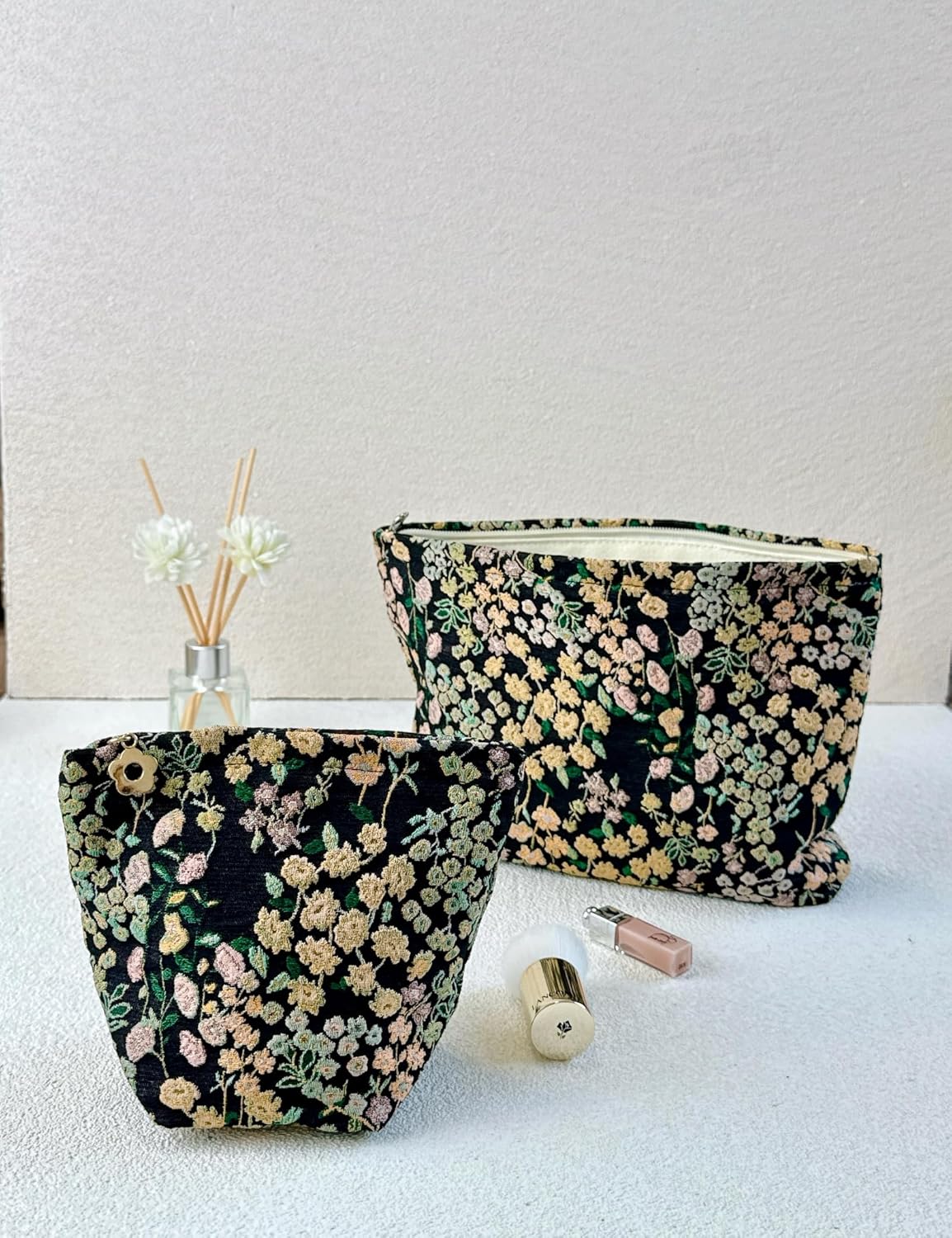 - Compact Design Makeup Bag for Purse: There are 2 makeup bags for women in set, 1 large zipper pouch and 1 small floral make up bag, making them perfect for organizing makeup, cosmetics, nail files, eyeliner, lipstick, or pencils