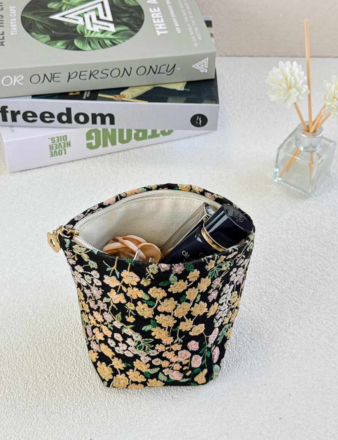 - Floral Pouch Pattern Small Cosmetic Bag for Purse: The large pouches for purse feature a beautiful floral print, adding a touch of style to your makeup routine. Make you feel happy everyday.