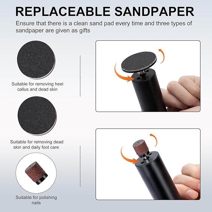 - 【Replaceable Sandpaper】Our electric callus remover comes with 20 sanding discs (2 types) and 10 nail buffer sanding rings, adjustable and easy to use, making it the perfect tool for anyone looking to keep their feet soft and callus-free.