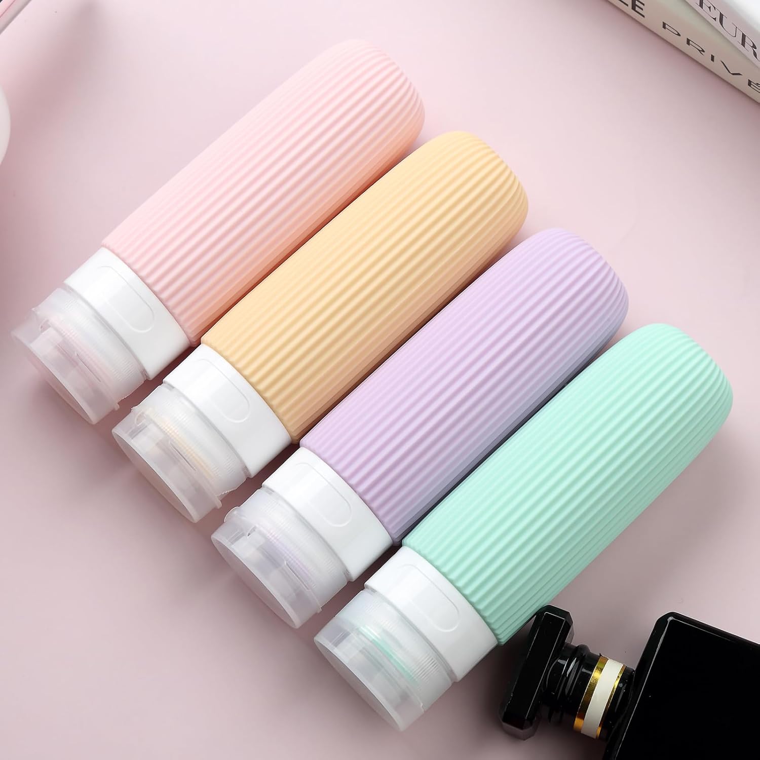 Travel Bottles for Toiletries, Tsa Approved 3oz Portable Travel Bottles, BPA Free Leak Proof Squeezable Silicone Travel Size Containers, Travel Accessories with Clear Toiletry Bag (4 Pack)