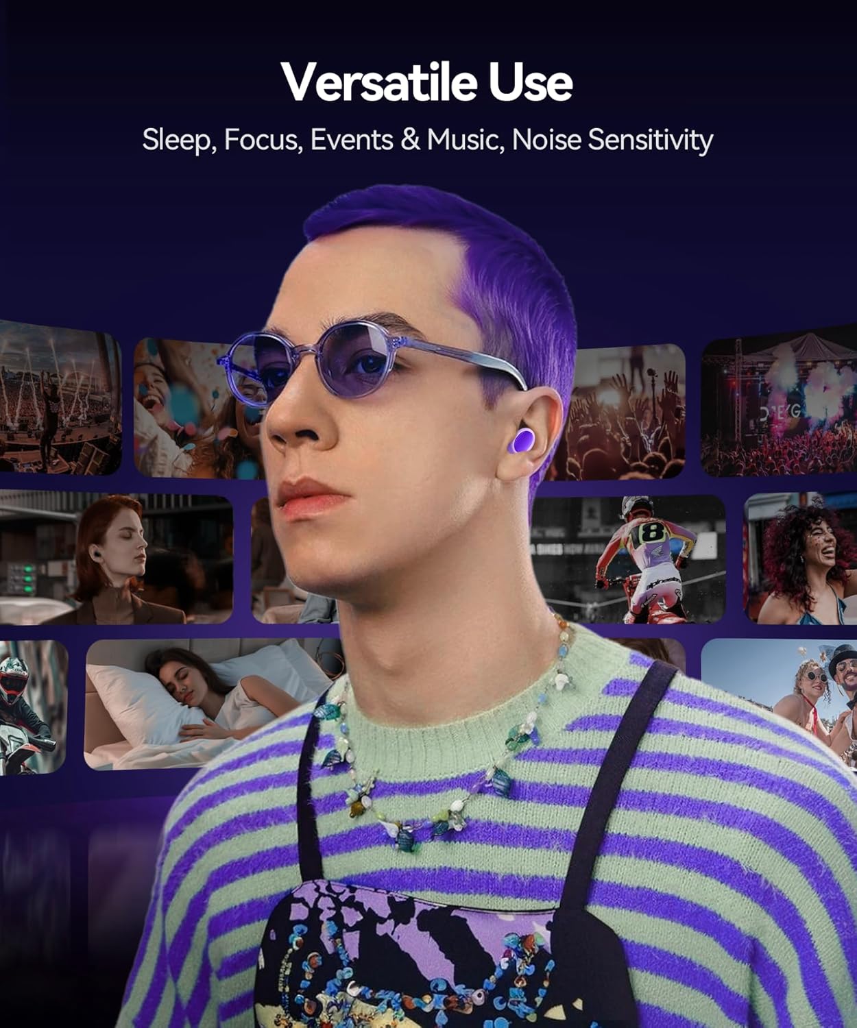 - Effective Hearing Protection: Noise cancelling ear plugs use intelligent frequency filtering, engineered for hearing care. Ear plugs for sleeping and noise reduction blocking harsh sounds (like car noise). With our sleep ear plugs, prevent discomfort during flights or altitude changes. Ear plugs for concerts deliver crystal-clear sound with high fidelity while protecting your hearing. Sleeping ear plugs are perfect companion for peaceful sleep, comfortable travel and immersive music experiences