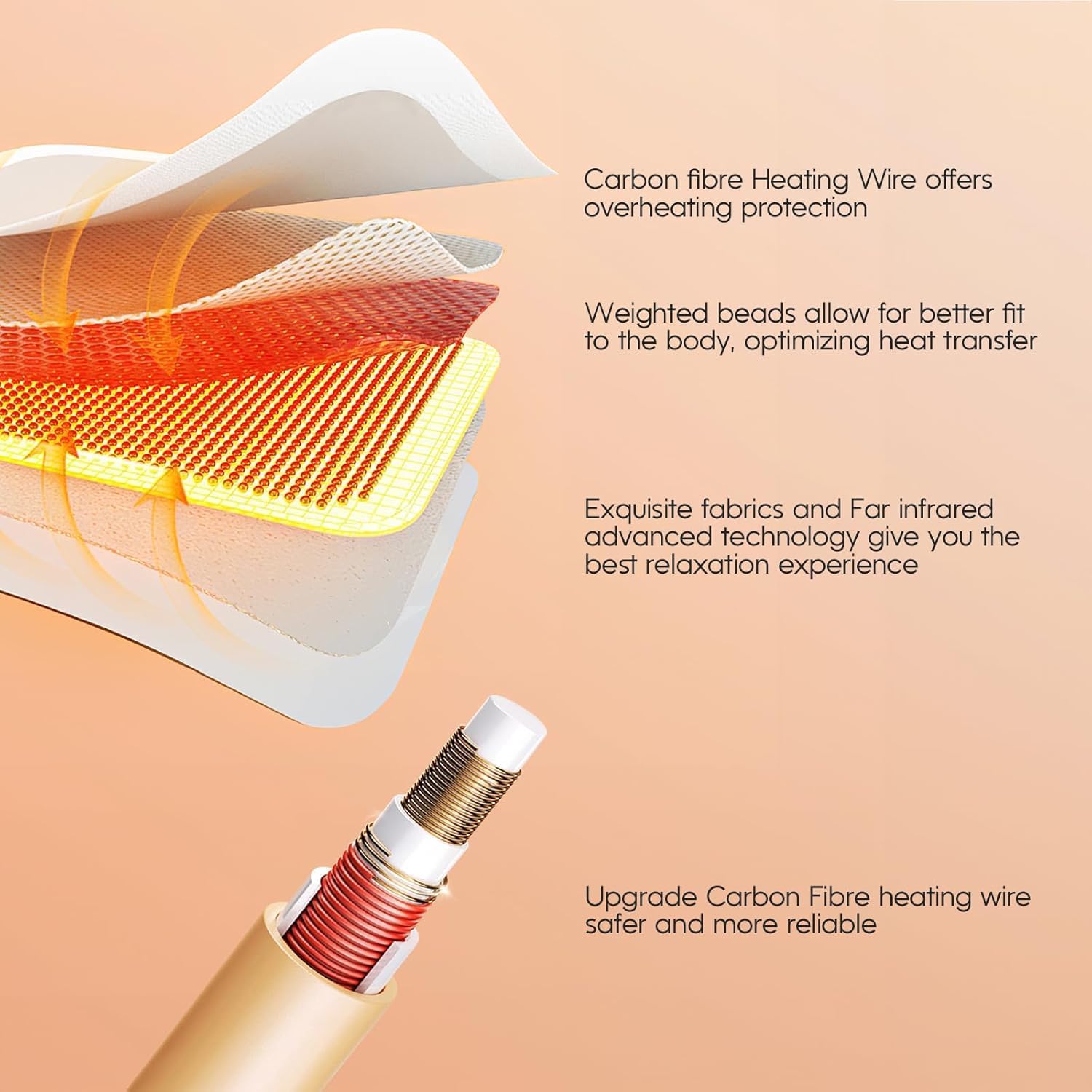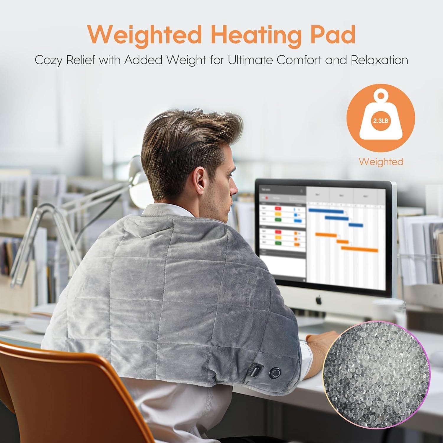 - Weighted Heating Pad for Full Body Relief: Our heat pad is filled with 2 lbs of high-density gravity beads, which are non-toxic, BPA-free, lead-free, and phthalate-free. It provides just the right amount of pressure to soothe muscles. Enjoy our 17" x 33" king-size heating pad, which effectively addresses pain in the lower back, shoulders, legs, neck, knees, and more. It is ideal for menstrual cramps and muscle aches. Use it comfortably on the couch or bed with the 6 ft extra-long power cord.