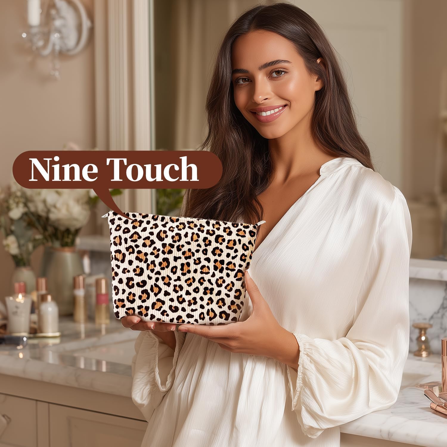 Leopard Print Corduroy Makeup Bag for Women – Soft Cosmetic Travel Pouch with Zipper Closure, Large Toiletry Organizer with Lining, Stylish Animal Print Makeup Case for Purse or Travel