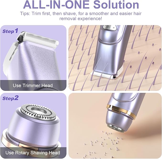 - IPX6 Waterproof Easy-to-Cleaning: Experience IPX6 waterproof electric shaver for women both waterproof for Wet/Dry Use, Removable blades and washable trimmer heads, come with a cleaning brush make cleaning easier!