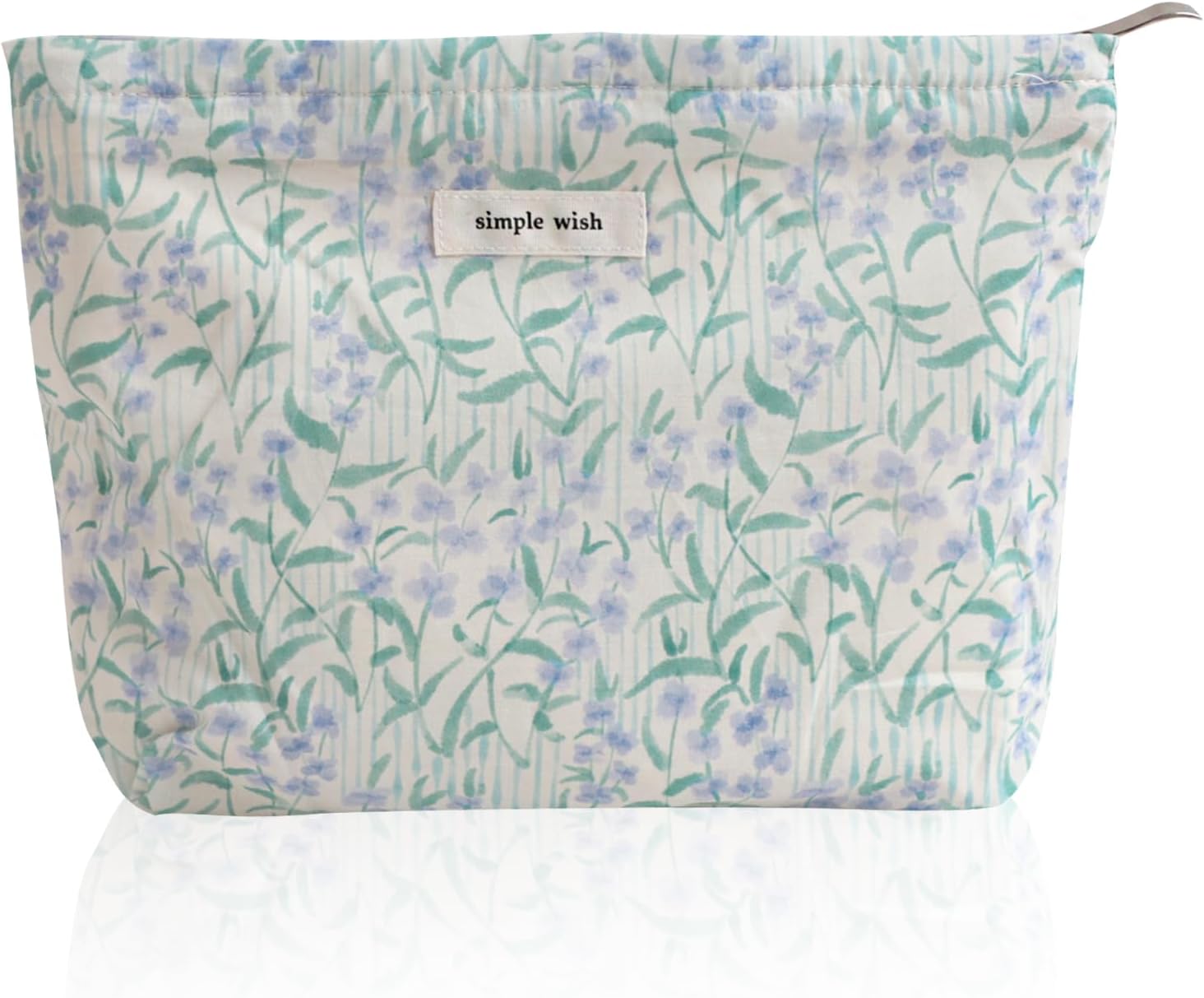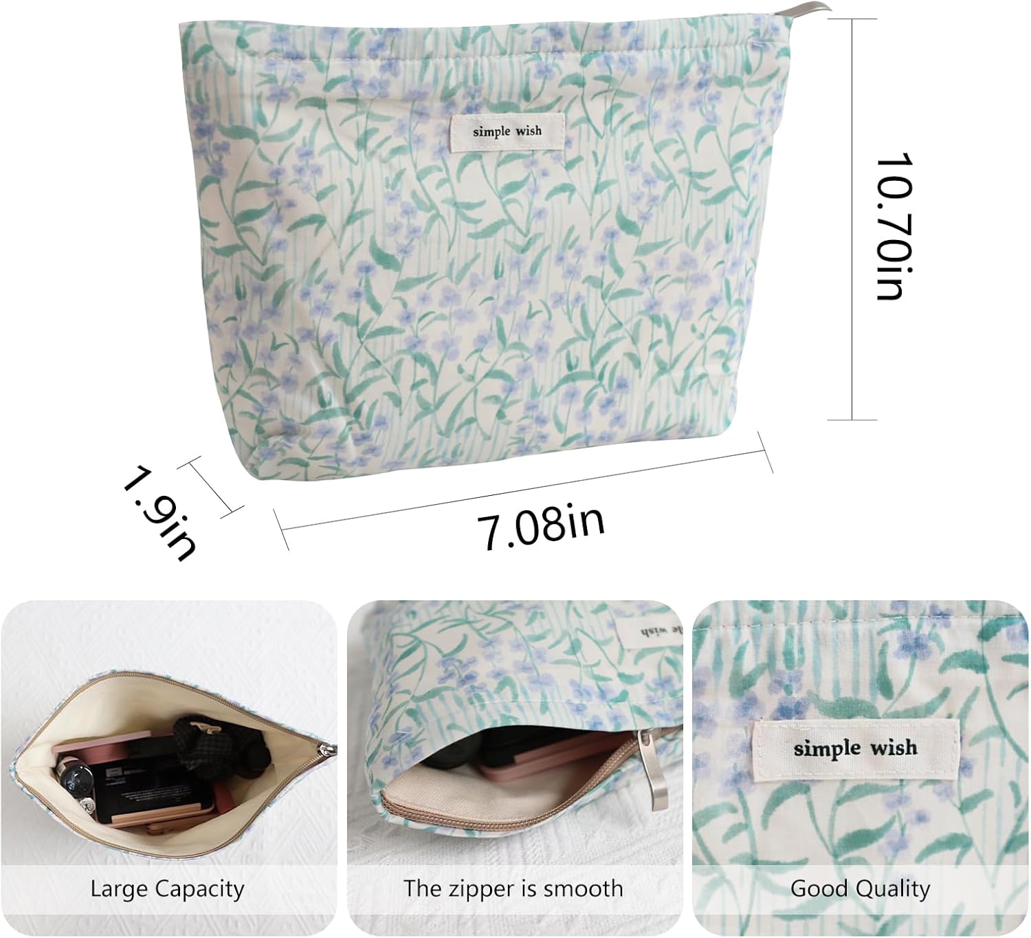 Wudygirl Cute Makeup Bag for Women - Travel Cosmetic Bag with Zipper Makeup Pouch Floral Make up Organizer Handbag Aesthetic (Purple Floral)