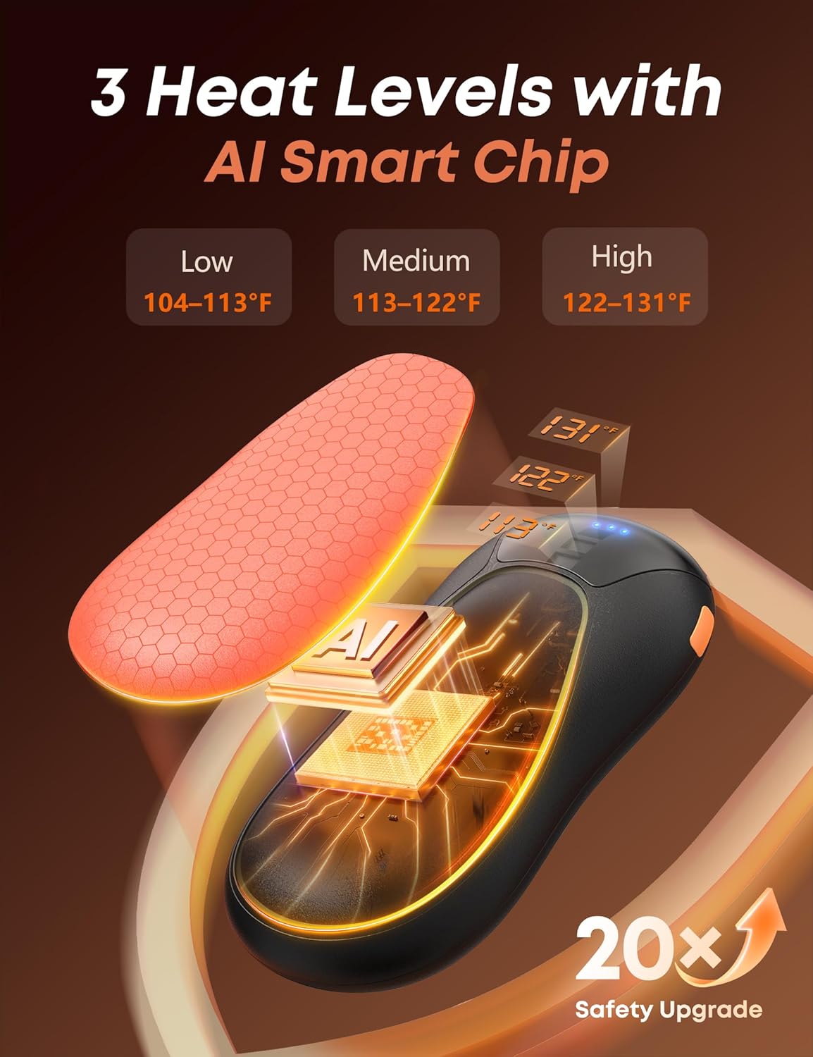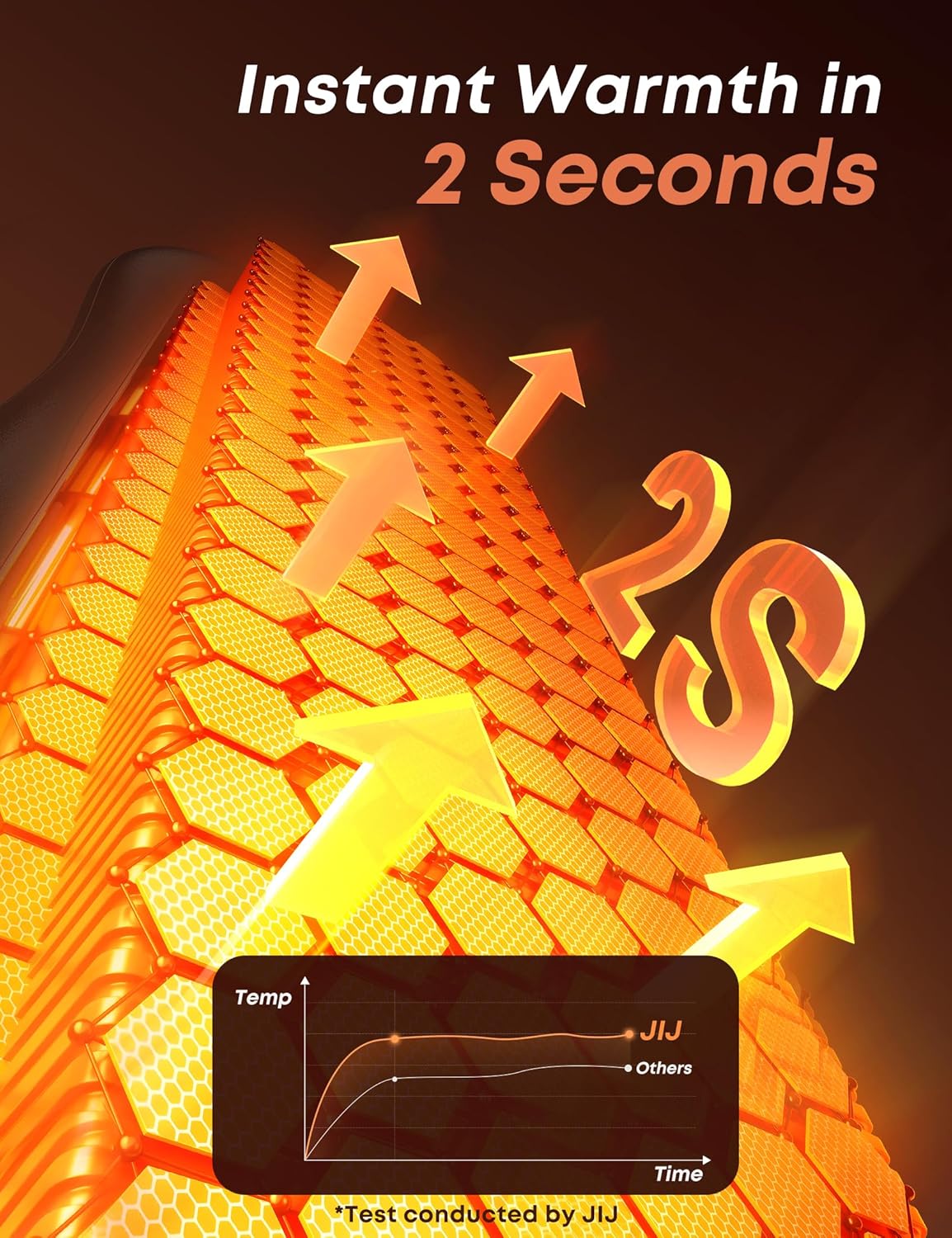 - [Instant 2s Heating] Built with an AI temperature control chip, JIJ electric hand warmers deliver steady, precise heat in just 2 seconds—no more sudden hot or cold swings like other models. Choose from 3 heat levels (Low 113℉ / Medium 122℉ / High 131℉) to keep hands cozy and joints comfortable in any cold environment.