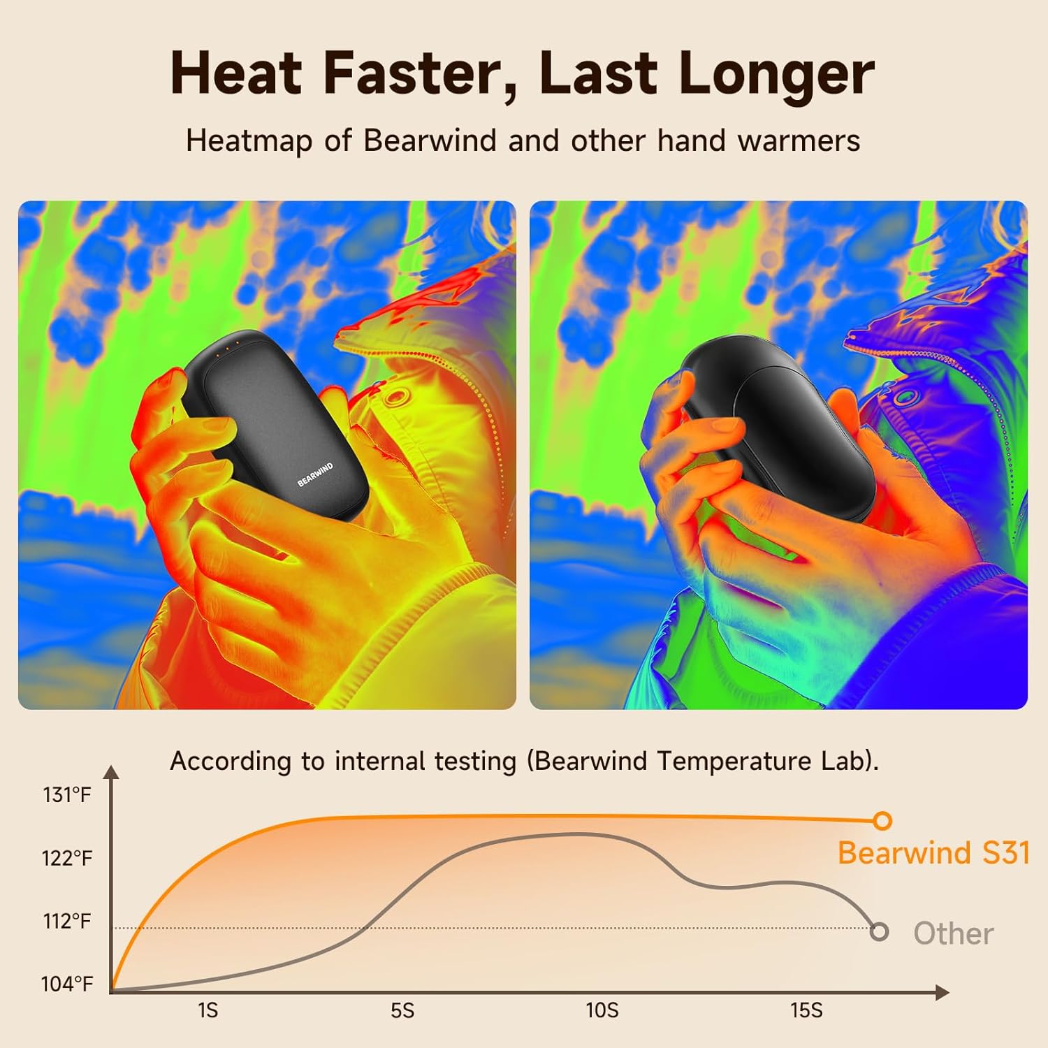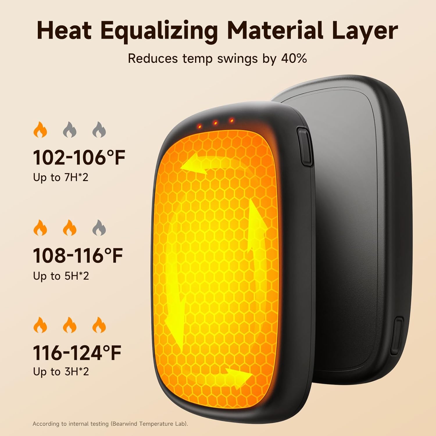 - 3 Heat Levels, All-Day Ready: Set to 104°F, 111°F, or 120°F. Battery lasts about 3-8 hours per charge (varies by level and ambient temperature). Ideal for nighttime warmth, outdoor work, winter walking, and hunting; helpful for cold-sensitive hands (e.g., Raynaud’s).