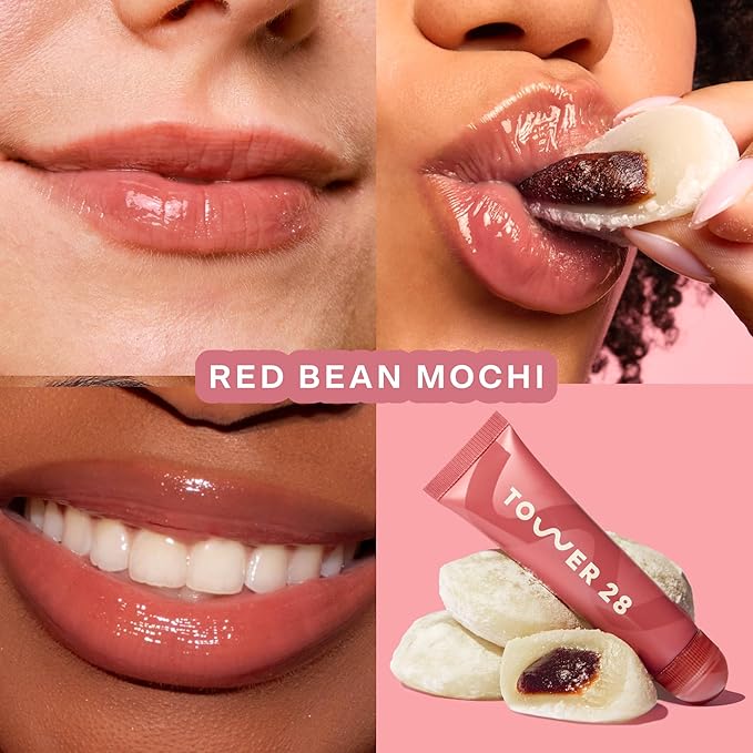 Tower 28 LipSoftie Hydrating Tinted Lip Treatment Balm, Moisturizing Lip Mask for Chapped Lips - Red Bean Mochi, Sheer Rosy Nude