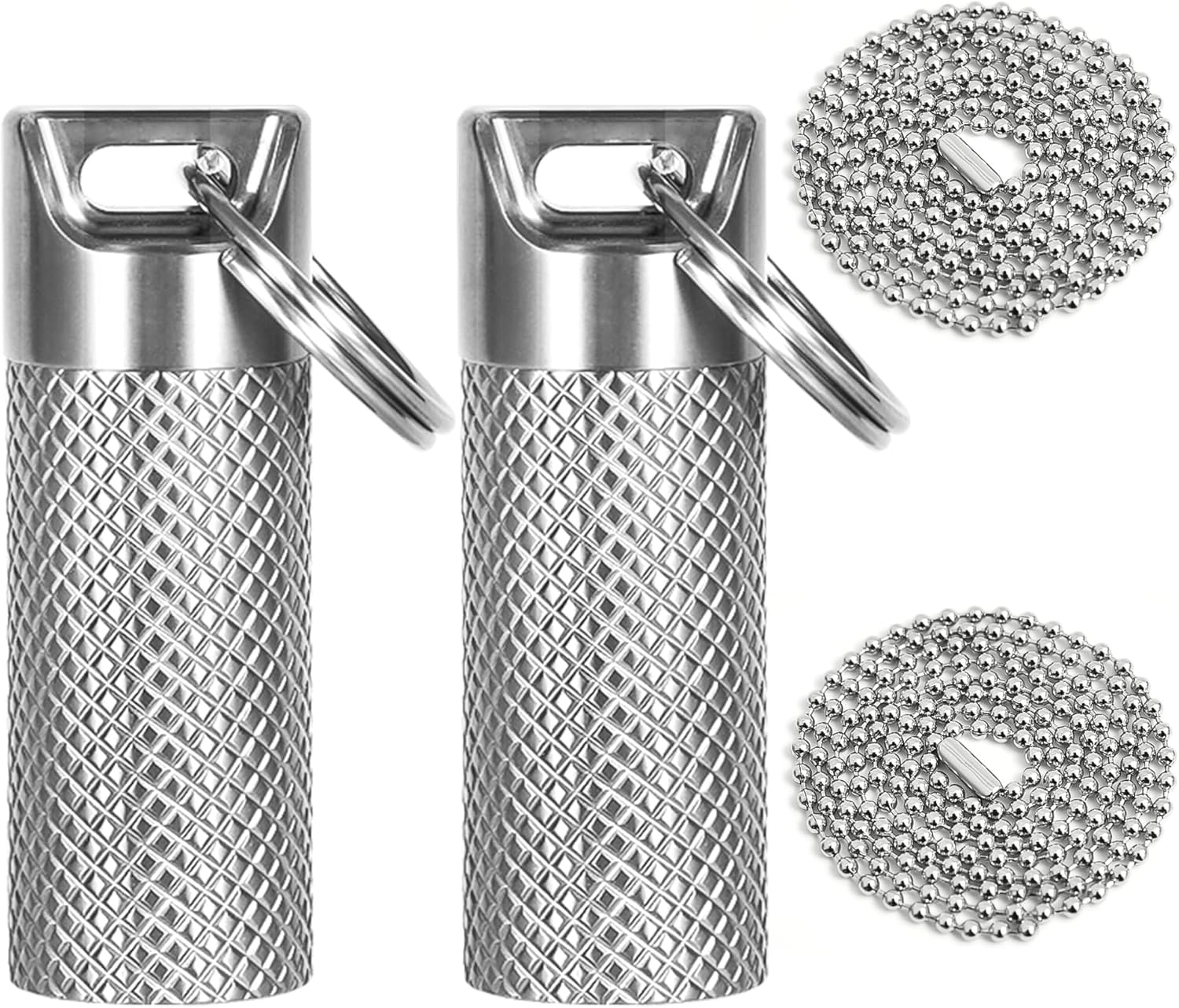 Mini Titanium Pill Box Keychain & Necklace - 100% Waterproof and Airtight, Travel Pill Holder for Essentials, Ultra Lightweight & Compact Medicine Container with O-Ring Seal (2PC)