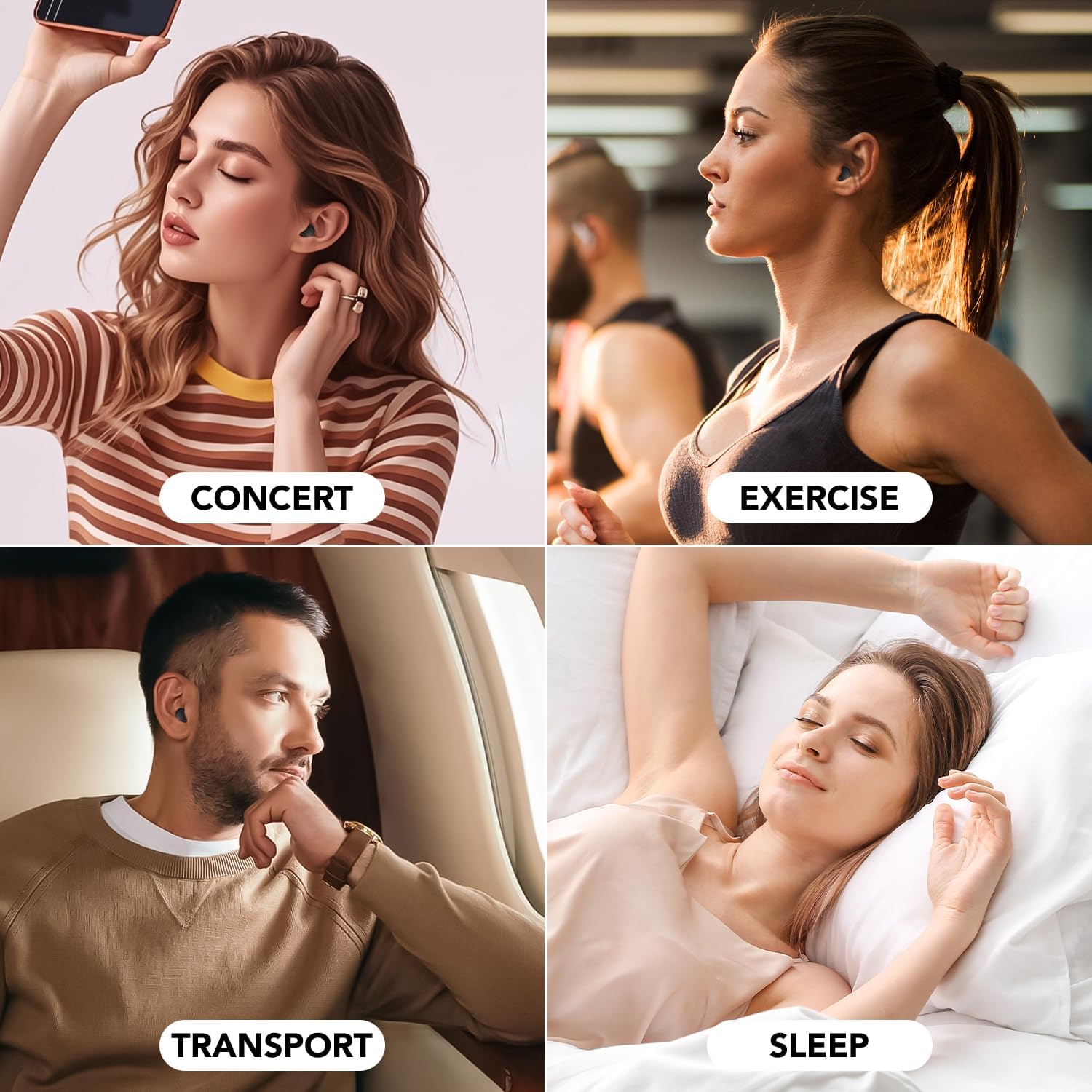 - Effective 45dB Noise Reduction: This ear plugs for noise reduction features a composite noise reduction structure and a multi-cavity acoustic resonance system to achieve 45dB of deep noise reduction. It effectively isolates broadband ambient noise from 30-4000Hz and blocks traffic, machinery, and snoring noises. Perfect for sleep, concentration, or activity, this noise cancelling ear plugs creates a peaceful space for you to stay focused and fully immersed.