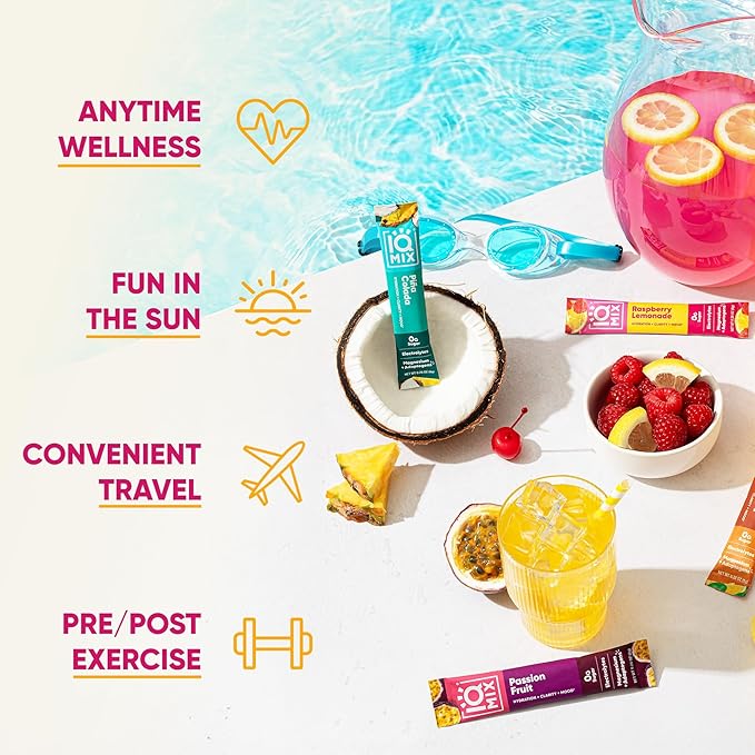 - INSTANT HYDRATION ELECTROLYTES POWDER PACKETS: IQMIX rapidly rehydrates while boosting energy, focus, and mental clarity. Tastes better than water and traditional electrolyte drinks. Designed to keep you sharp, hydrated, and performing at your best anytime