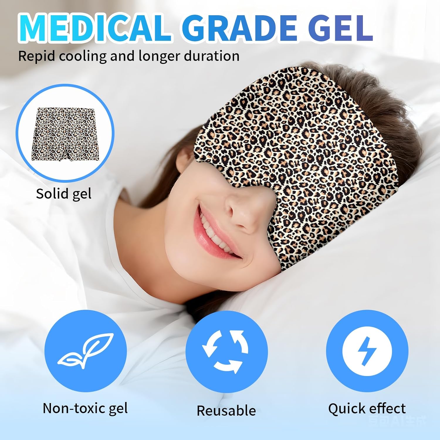 Migraine Relief Cap,Headache Relieve Cap,Leopard Print Reusable Gel Ice Head Wrap Cap for Tension,Stress,Hangover & Puffy Eyes.