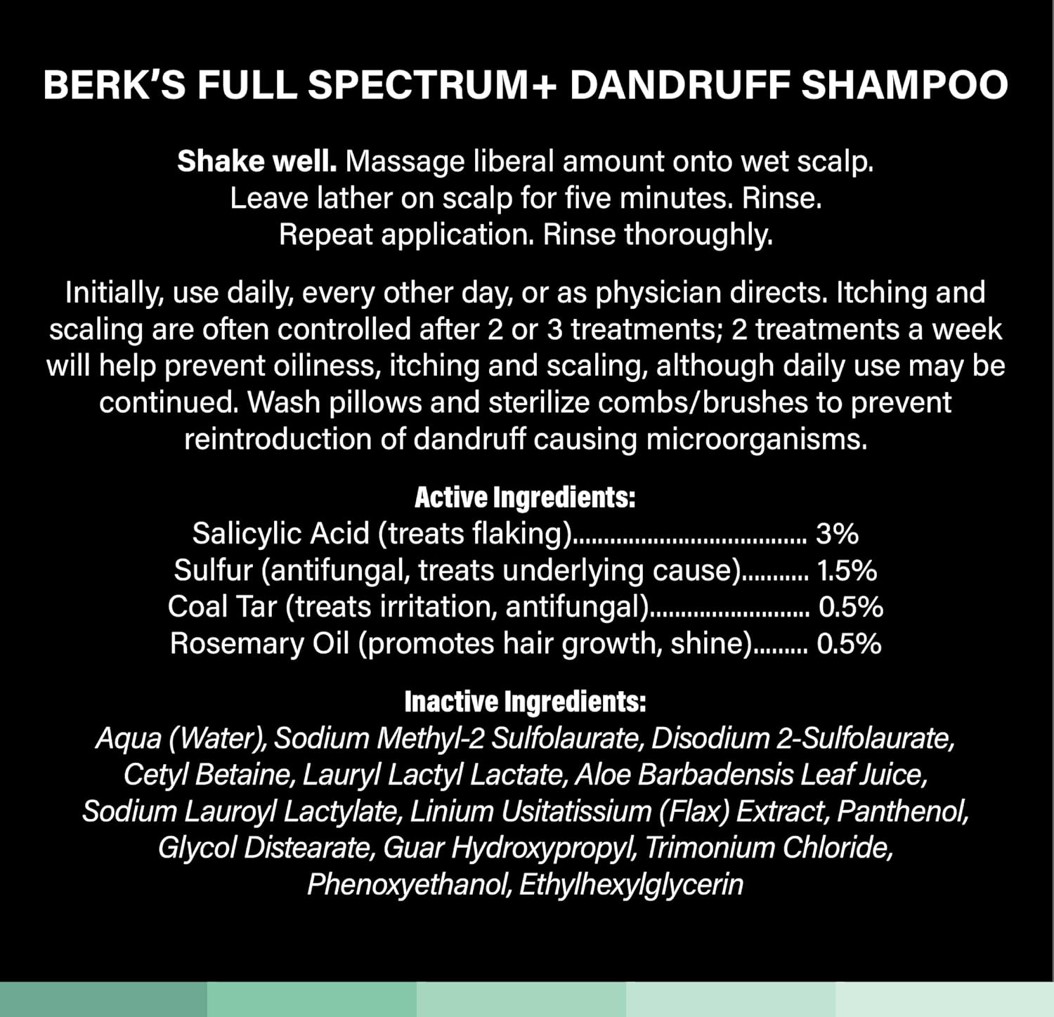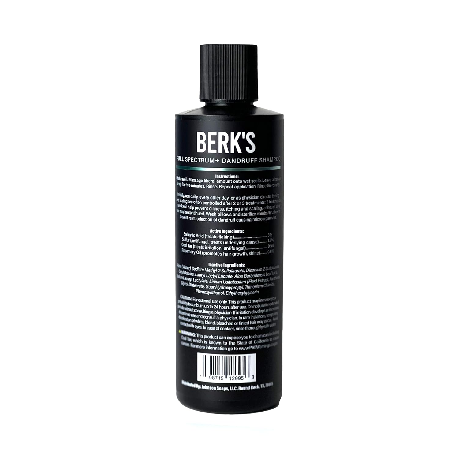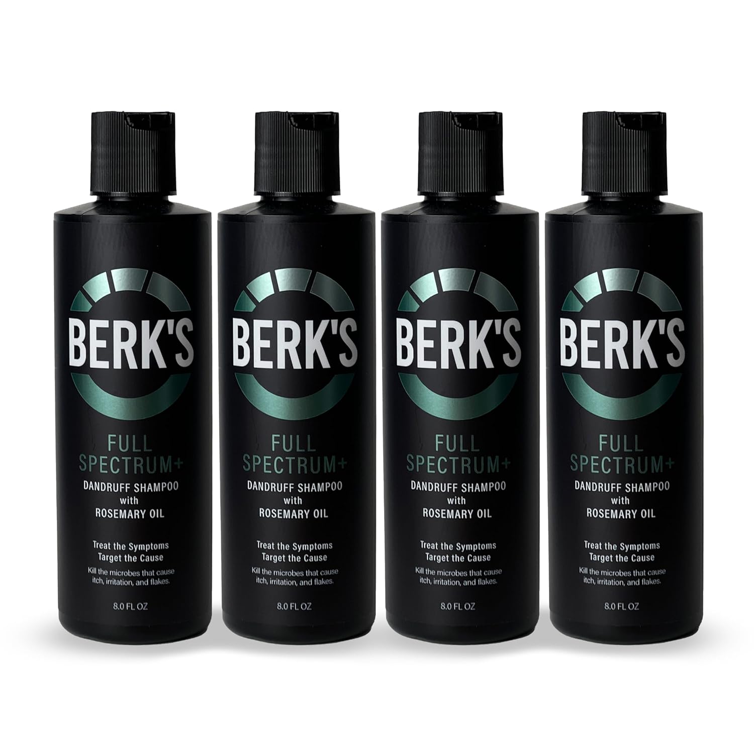Berk's Full Spectrum Dandruff Shampoo with Coal Tar, Salicylic Acid, Sulfur, and Rosemary Oil, 8 Fl Oz (4-pack)