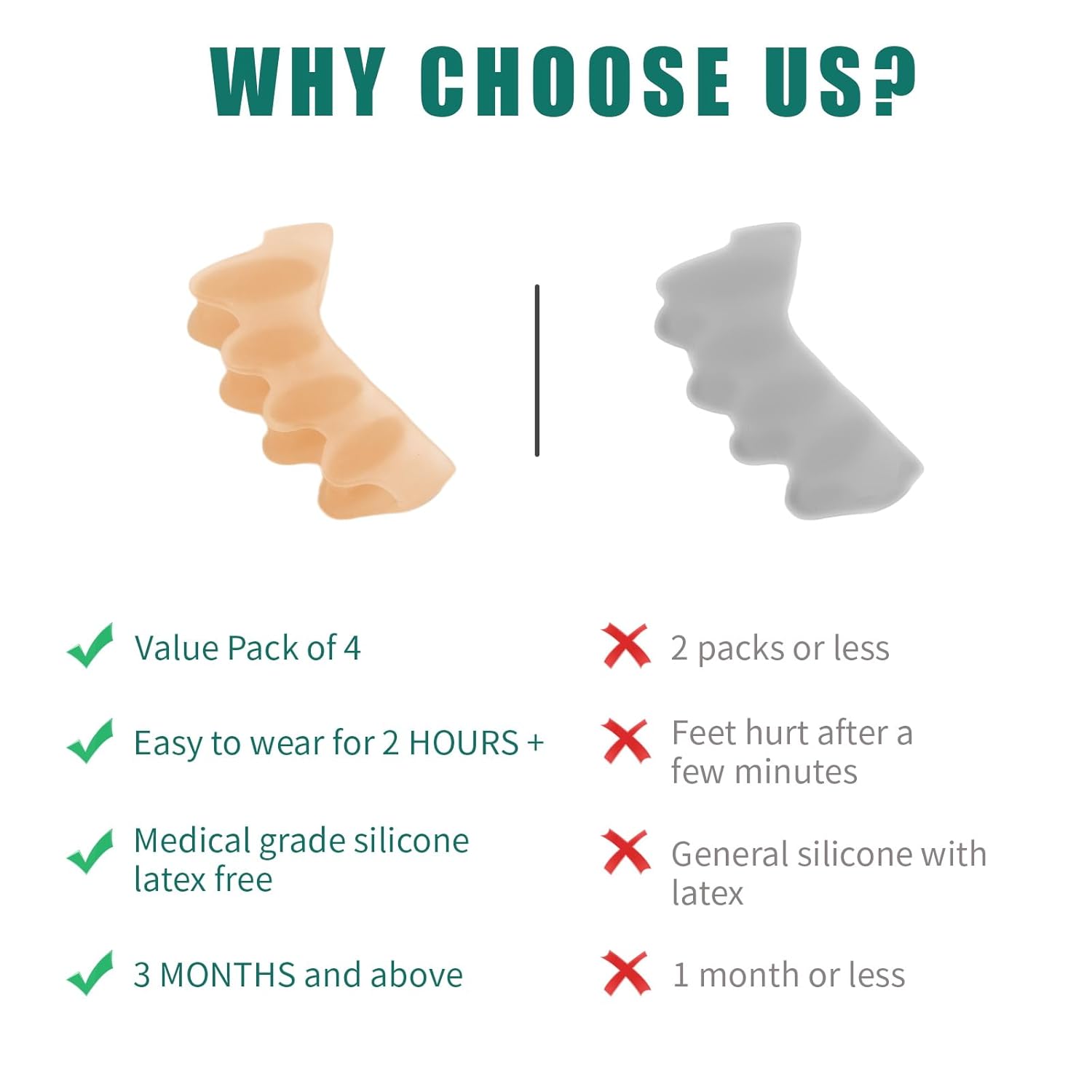 - 👣Effective Toe Separation: These toe correctors securely wrap around your toes, staying firmly in place. They provide optimal separation, prevent rubbing, relieve pressure, and help maintain proper toe alignment, promoting comfort and toe health.